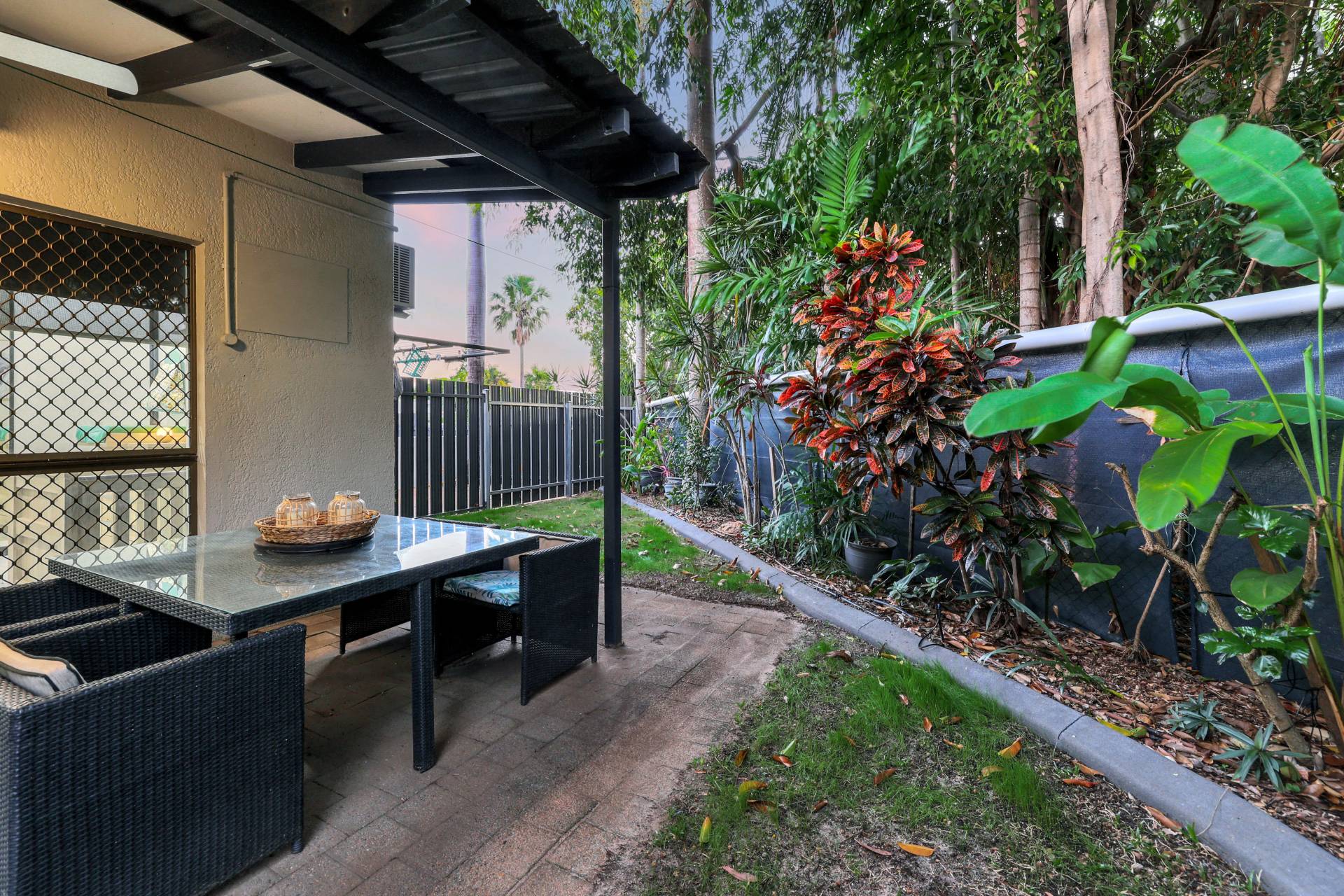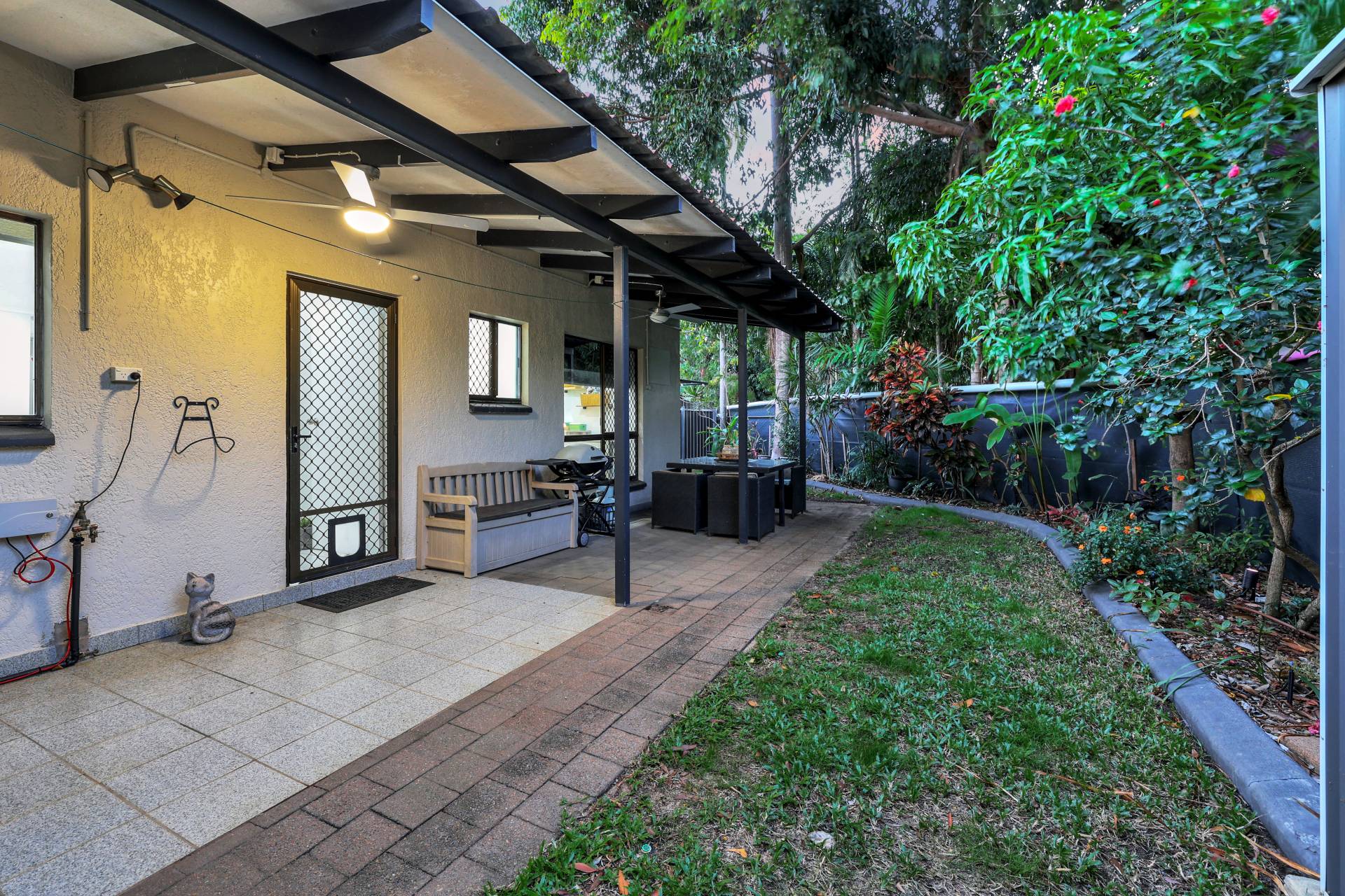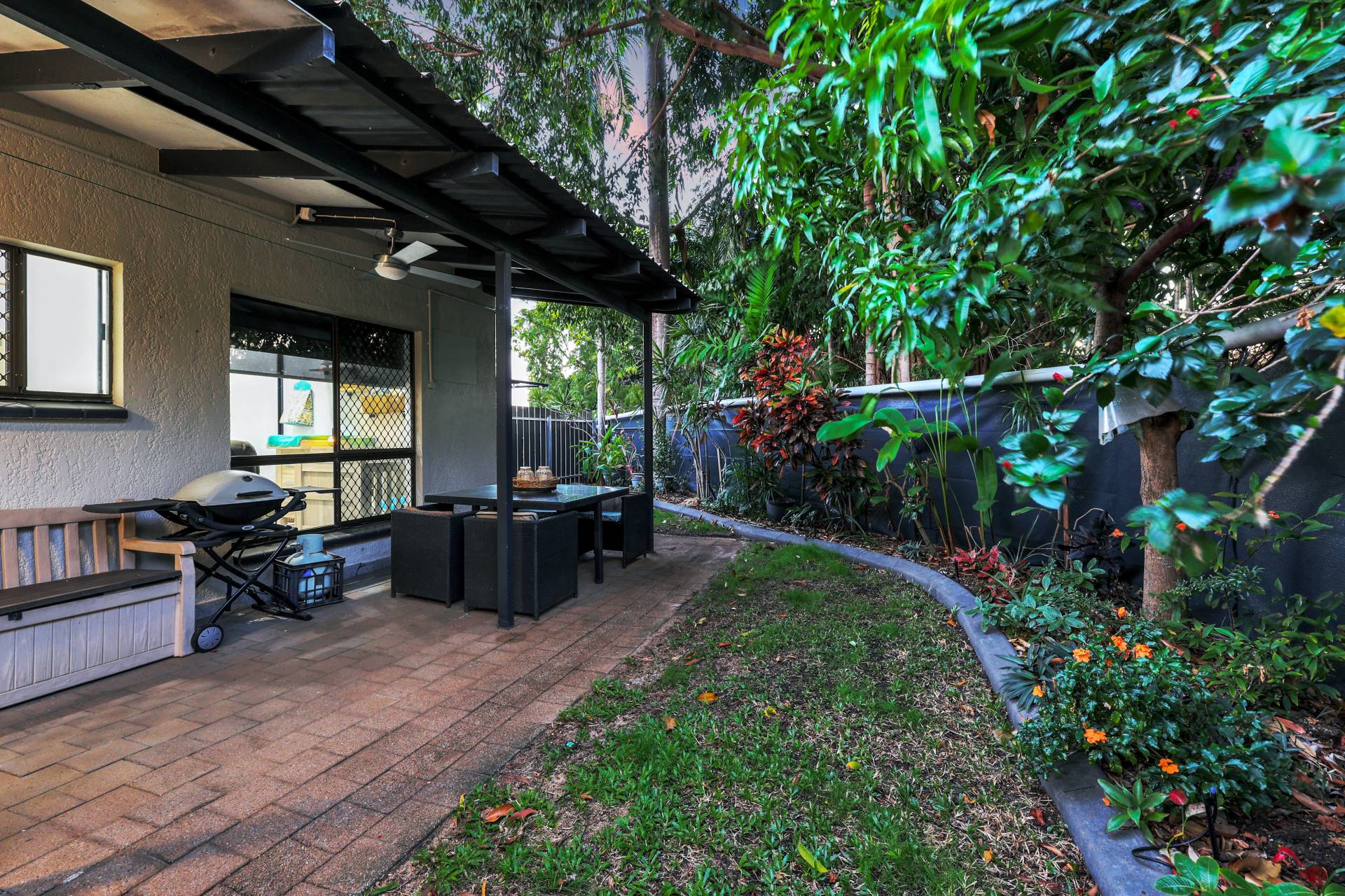 Outside the home has a quiet courtyard setting framed with tropical gardens thriving in their beds and shady lawns where the pets can play. Wrapping around to the back of the home where the courtyard opens up for additional outdoor space – there is gated entry through to the front of the complex from here as well. Entertaining is easy under the verandah with garden views – BBQ’s and family meals in a quiet tropical oasis.