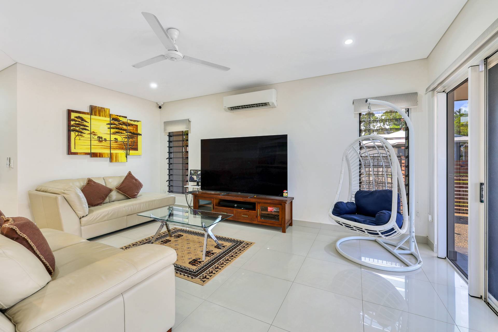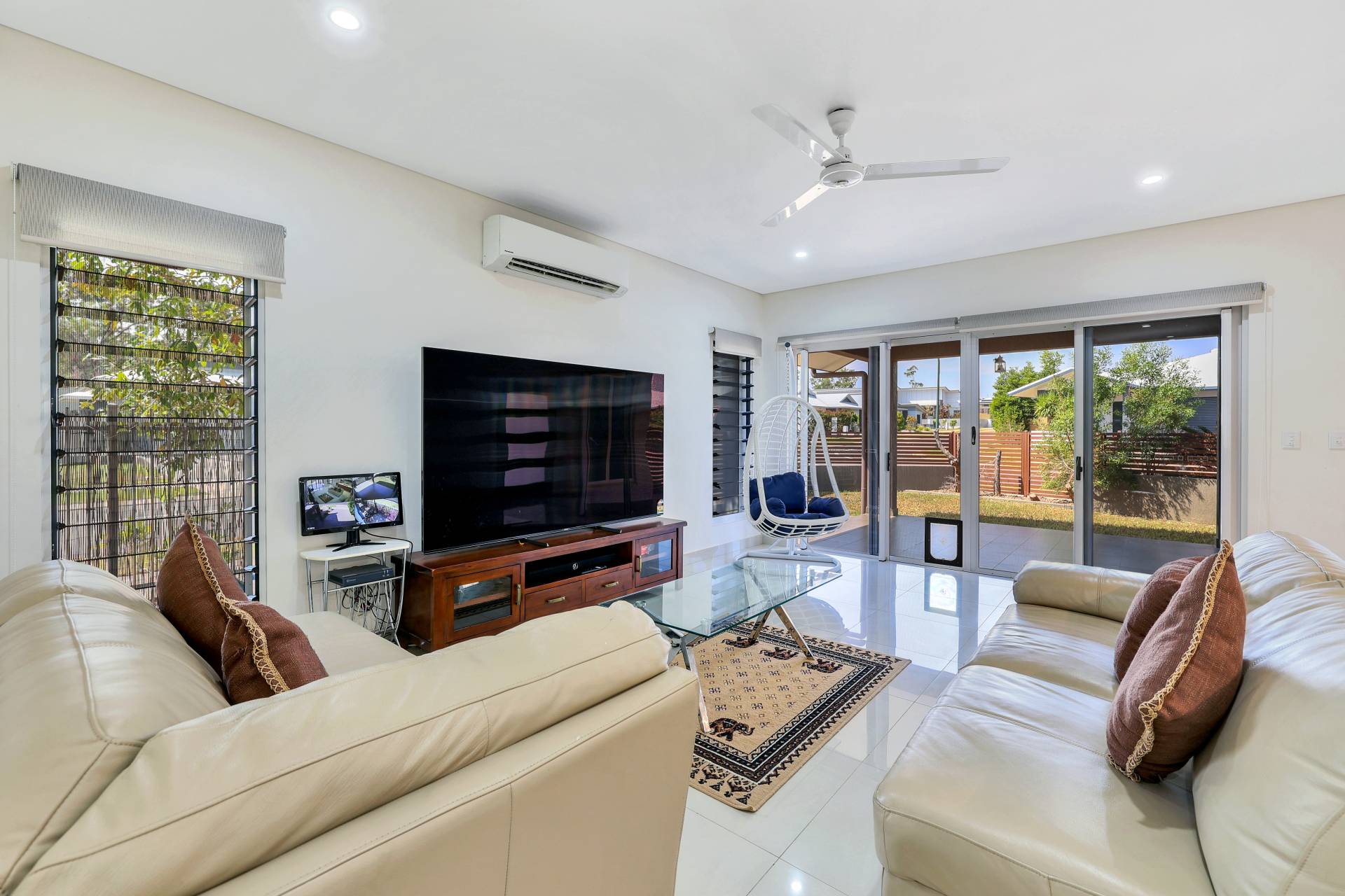 ·Free flowing living and dining areas with split A/C and banks of louvered windows