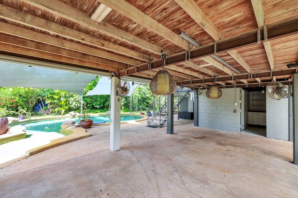 Seated on over 900m², this home has gated entry at street level, with triple vaulted carport parking (3 cars or 2 cars + boat/caravan) perfect for the Territory lifestyle.  Off the driveway you will find a huge, newly tiled, self contained area (approx 35m²) which can be used as a garage/workshop or even as a fourth bedroom/living area, with access to the downstairs bathroom, shower and kitchenette.