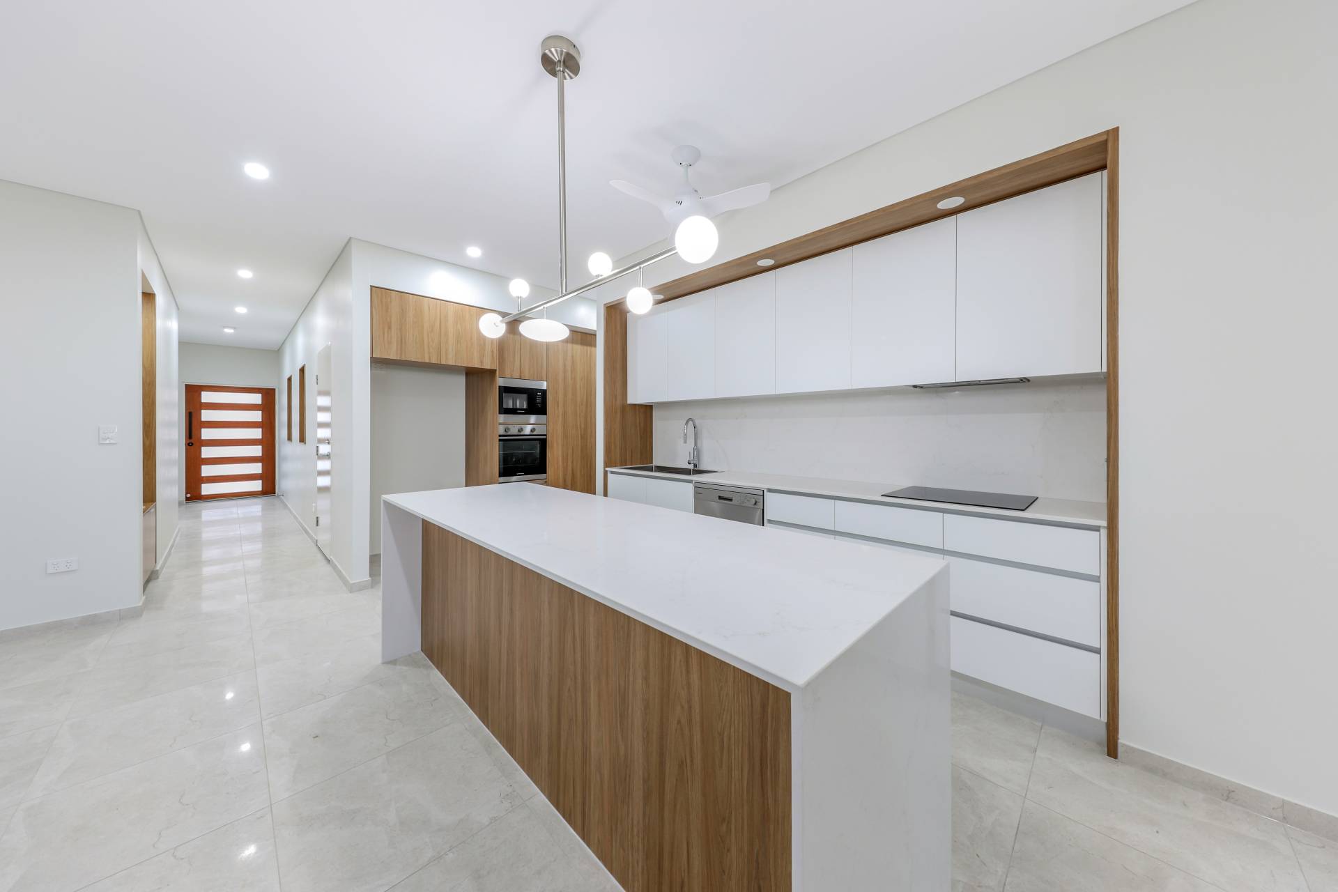 •Kitchen is a show stopper with stone topped island bench and pendant lighting
