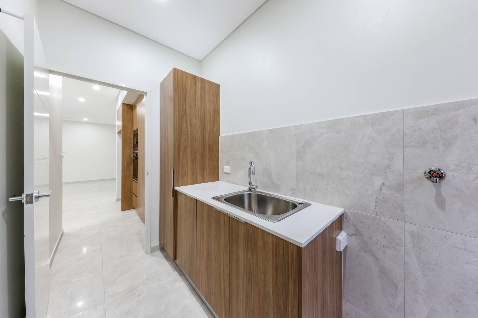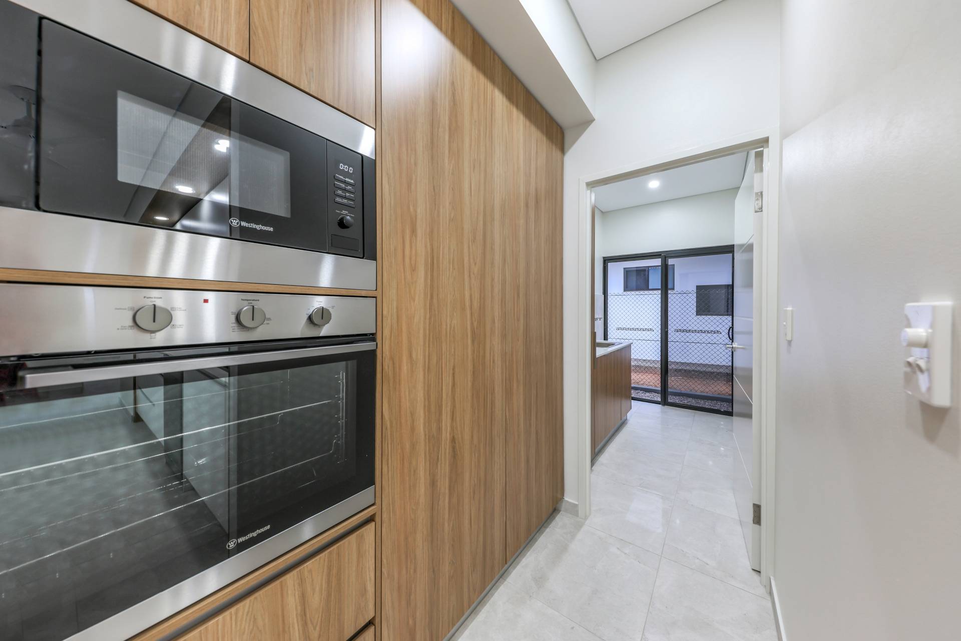 Open plan living, dining and kitchen areas create a vast space for the family to come together for meal times and movie nights. Tiled flooring underfoot of course with A/C throughout as standard plus there are plenty of light filled windows to showcase the easy-care gardens and lawns. The kitchen is a show stopper with stone topped island bench with feature pendant lighting. Along the back wall are a row of seamless storage space with overhead lighting and storage along with a wall of built in appliances and additional pantry space that flows into the laundry utility room.