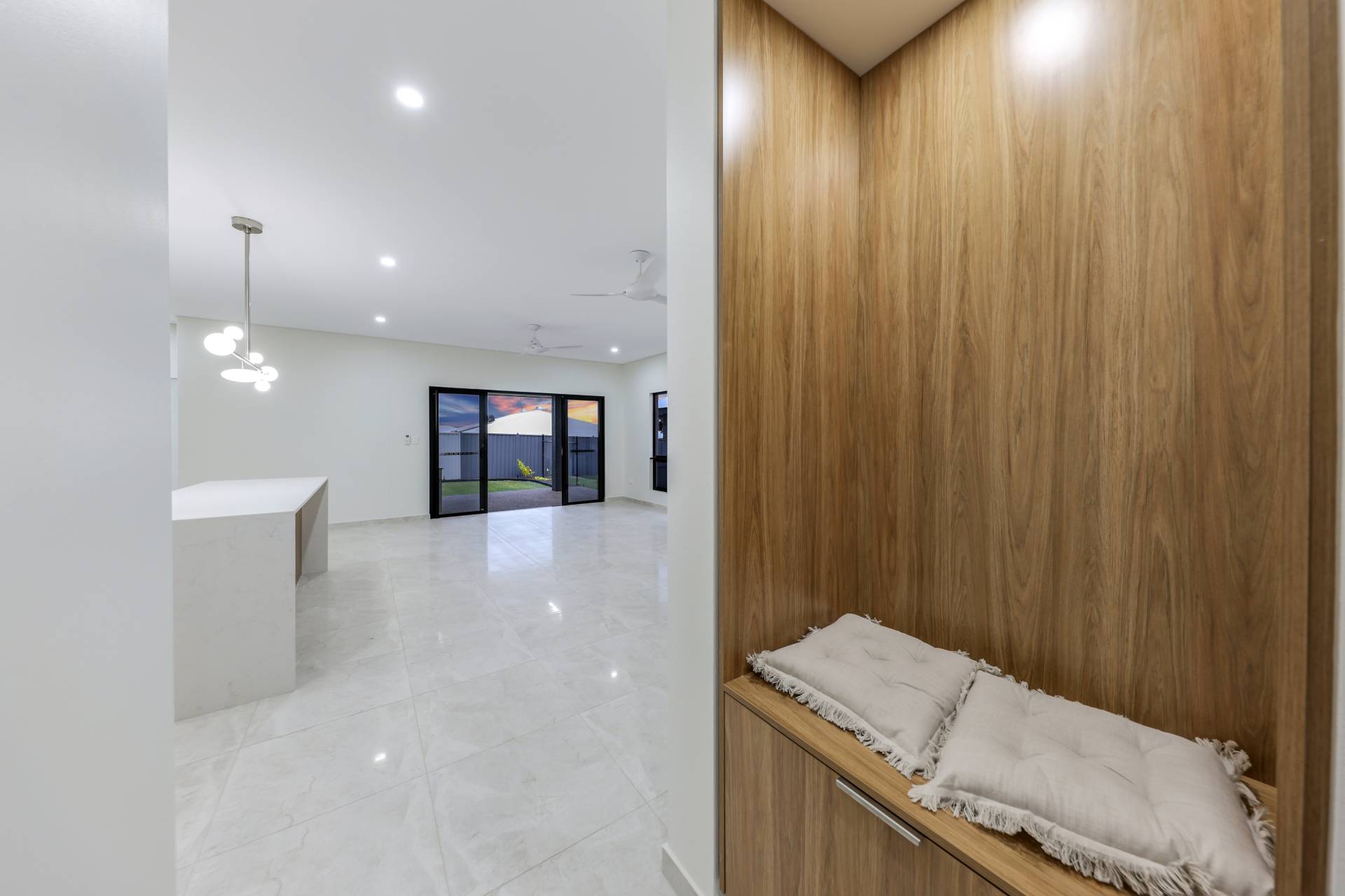 Carefully crafted by the talented team at Alpha Homes – this property has been designed with luxurious living and easy everyday entertaining in mind. From the street the home presents with a towering dramatic roofline with dual garage parking and a formal front entry that leads through to the oversized hallway with built in display areas and a built-in mud room to kick off your shoes and pop your bag securely in the draw – the kids will also love this as a calm space to read a book.