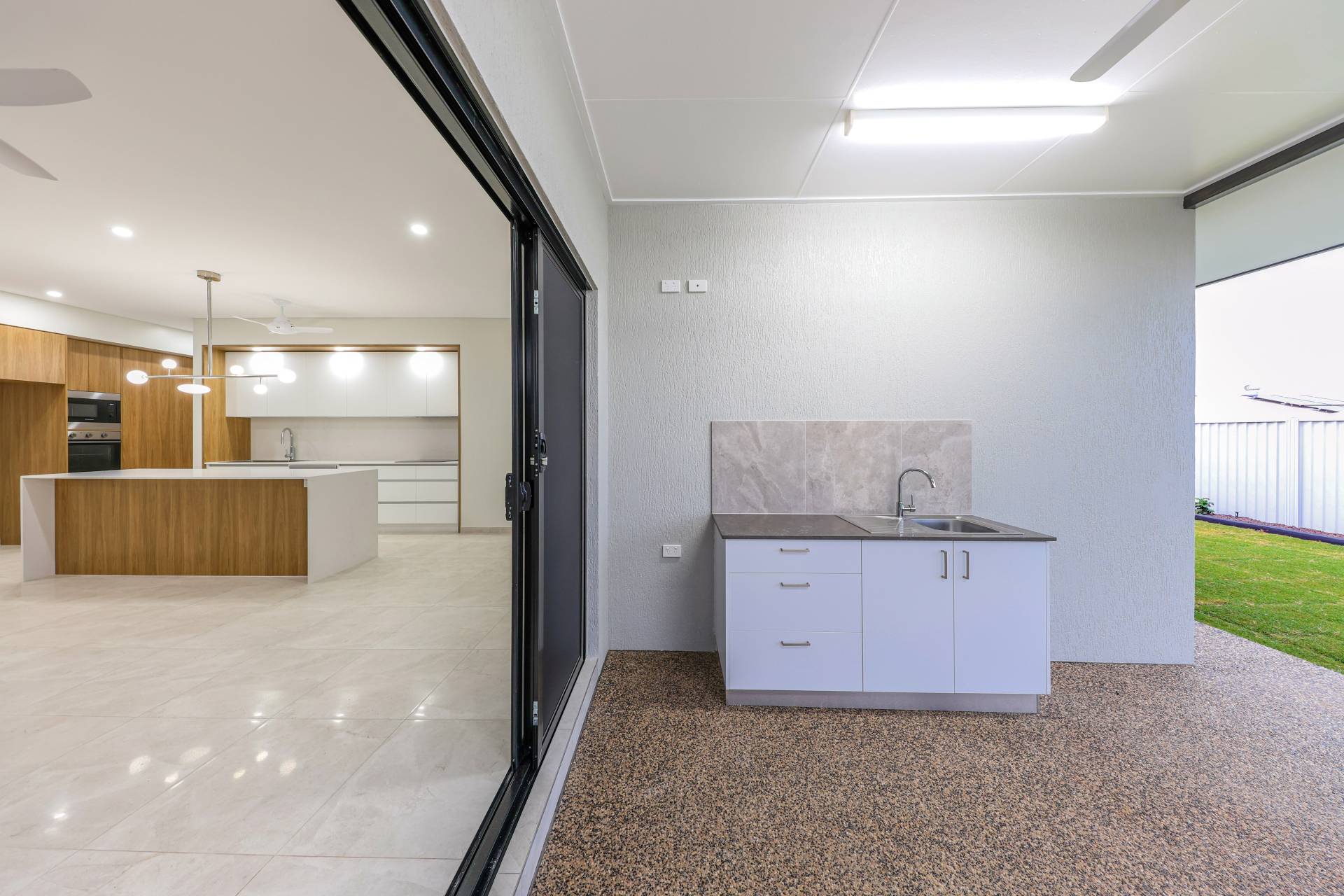 Outside the home continues to impress with a built-in kitchenette space great for hosting the BBQ or family gatherings in style. Easy care lawns and gardens are reticulated and will grow in nicely with the coming wet season rains.