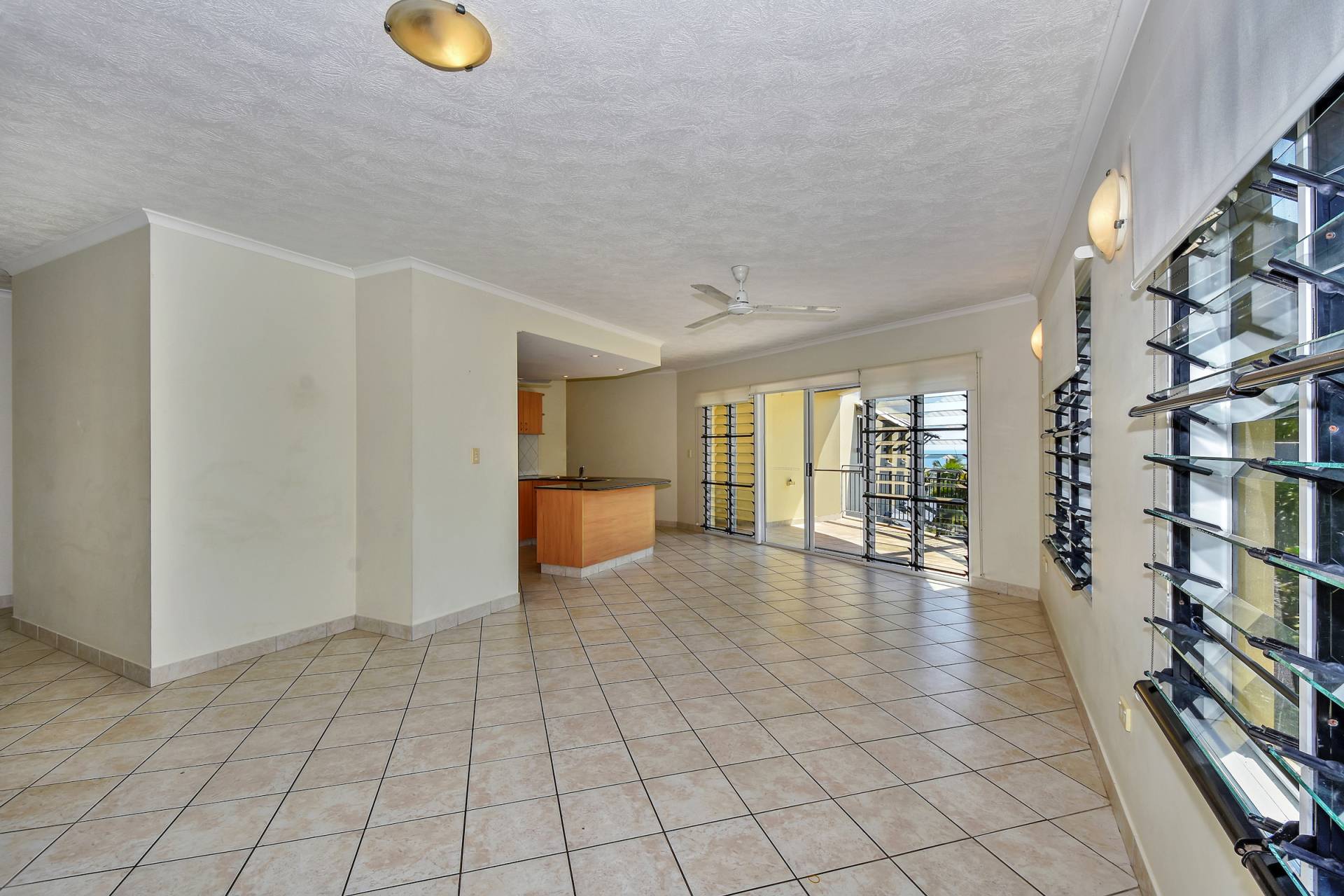This apartment has an open planned design completely surrounded by louvers which makes coming home feel like a beachfront holiday.