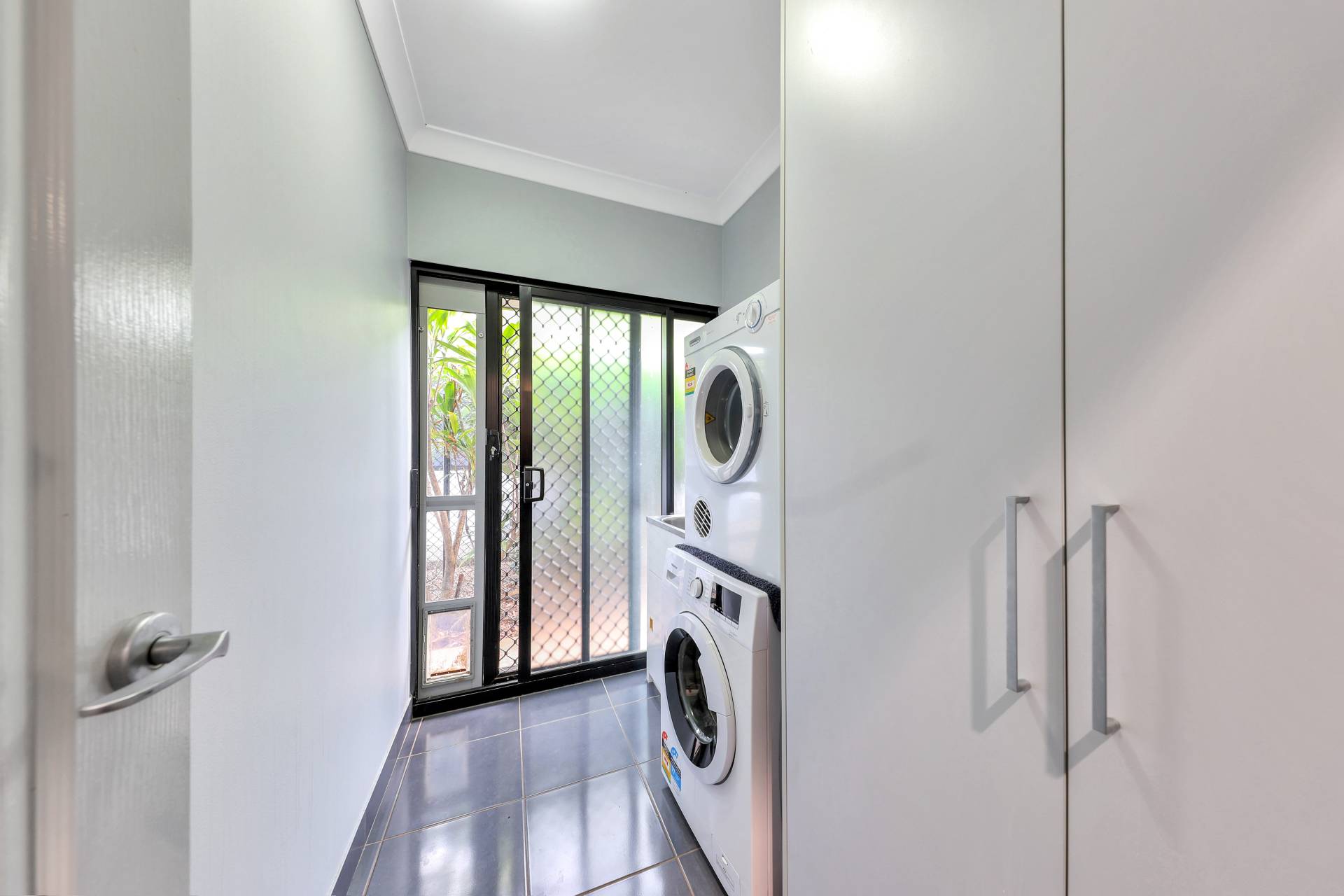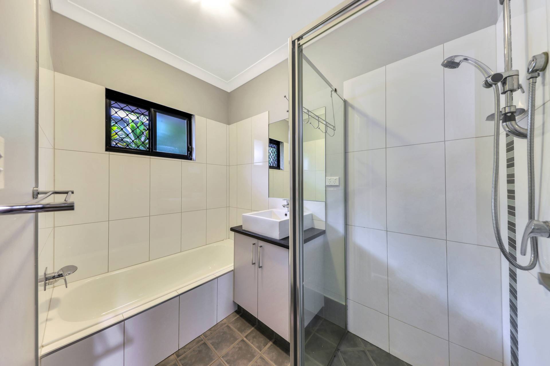 The main bathroom offers a relaxing bath tub and a shower with a central vanity between them plus sep toilet. There is an internal laundry room with door to the side of the home.