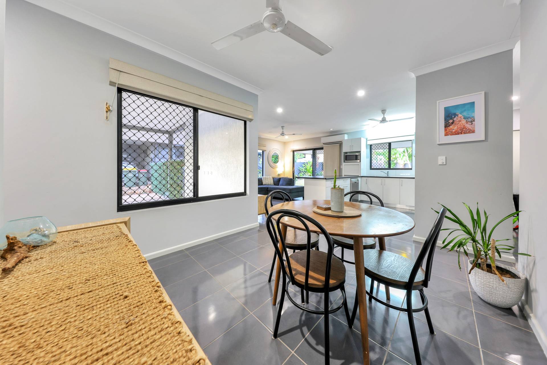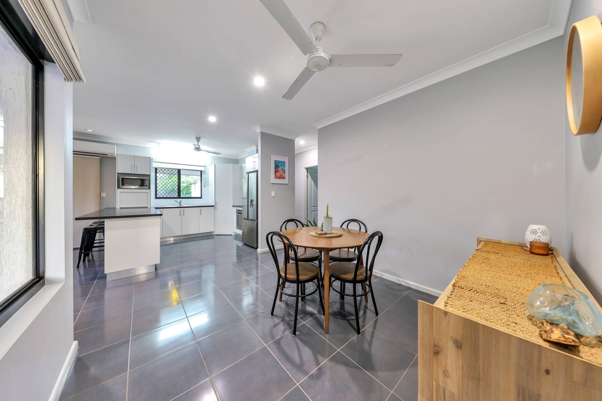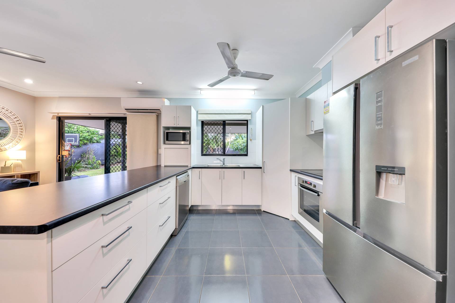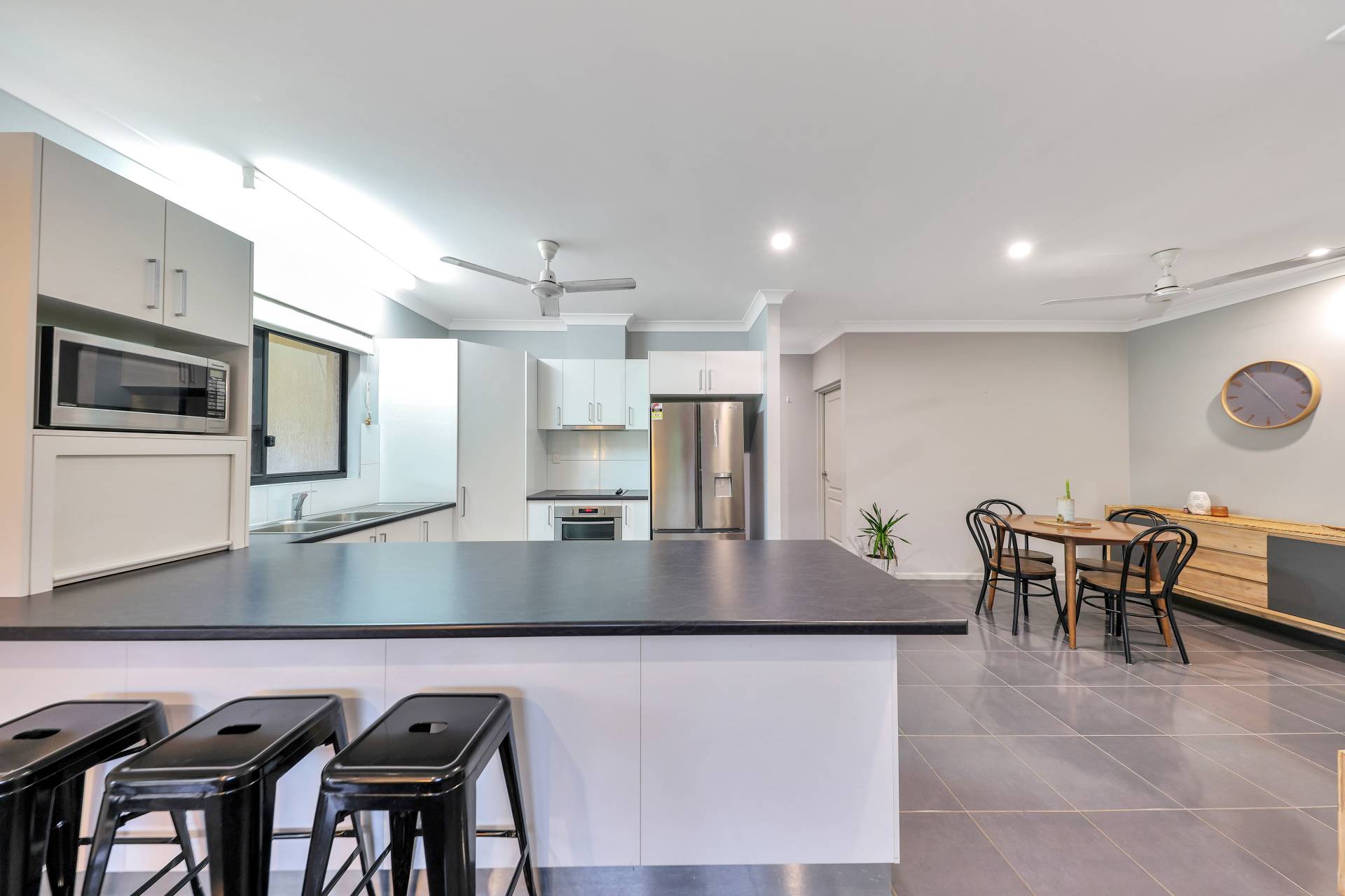 Central to the home are the free flowing living, dining and kitchen areas with plenty of natural light spilling in through the sliding glass windows and doors. The kitchen offers wrap around counters with breakfast bar seating and plenty of build in storage space and prep areas to work from as well as a view over the central living spaces and the outdoor areas making it a great hub of the home.