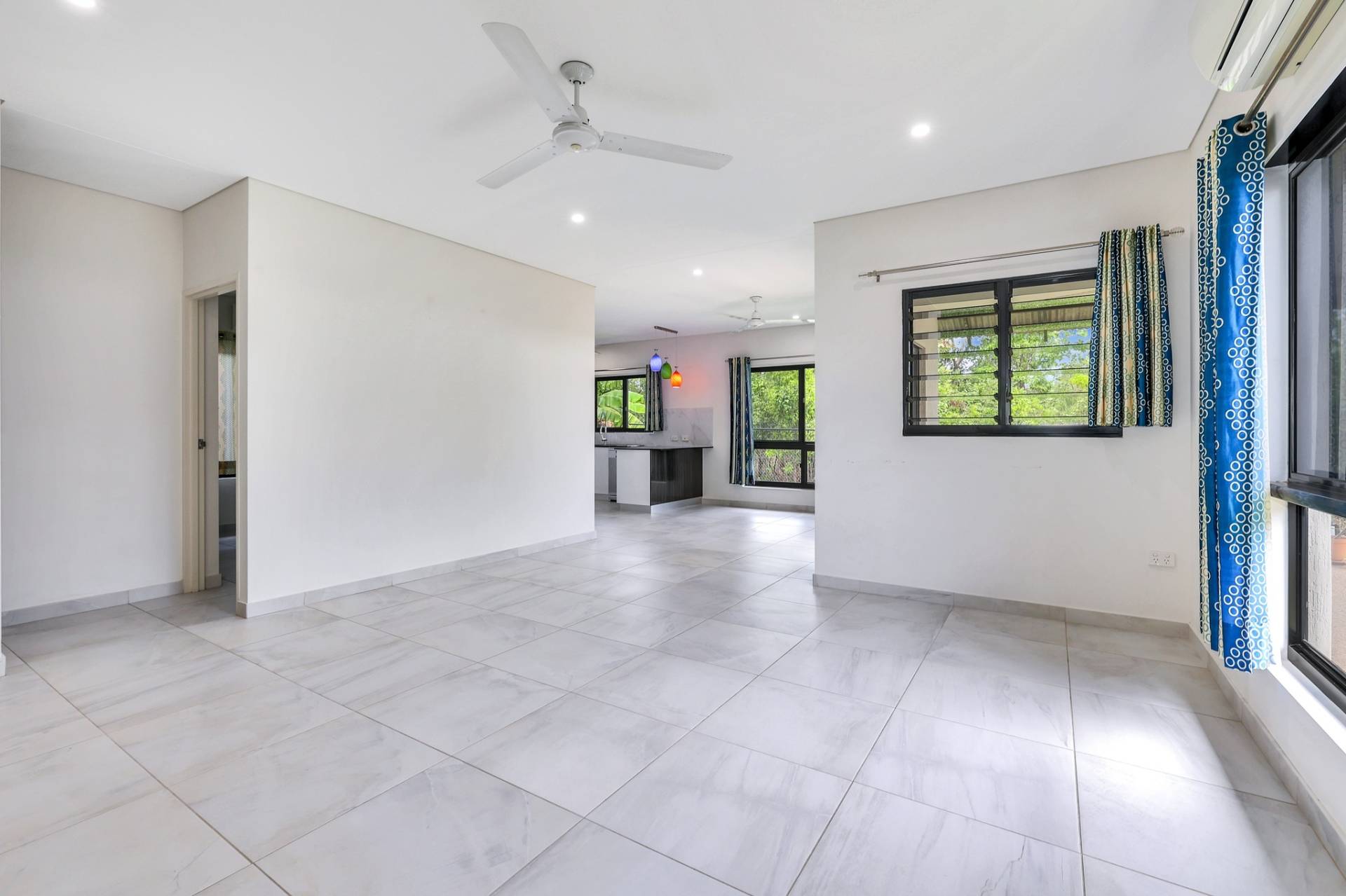 ·Open plan living and dining areas with tiled flooring underfoot