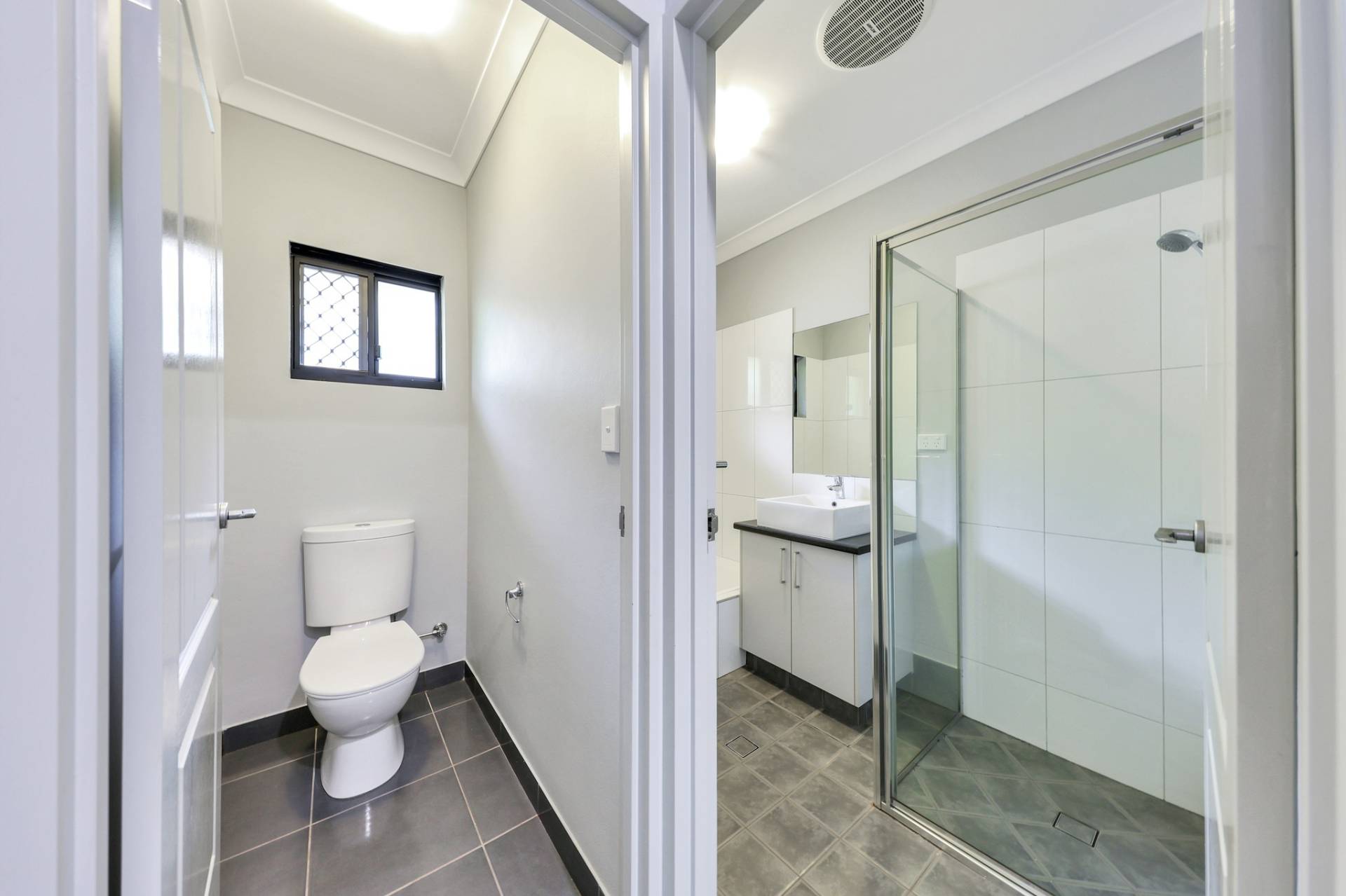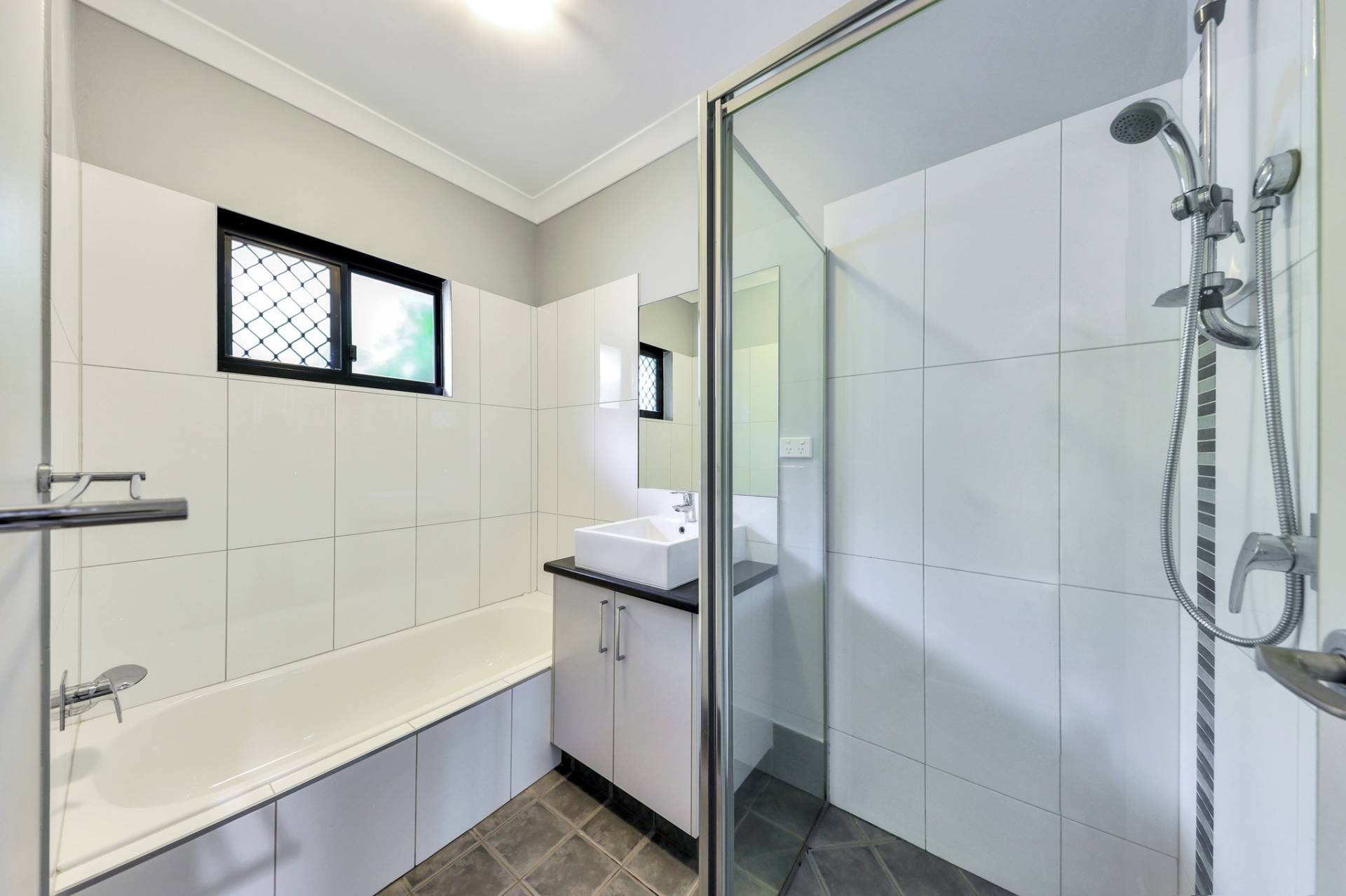 The main bathroom offers a relaxing bath tub and a shower with a central vanity between them plus sep toilet. There is an internal laundry room with door to the side of the home.