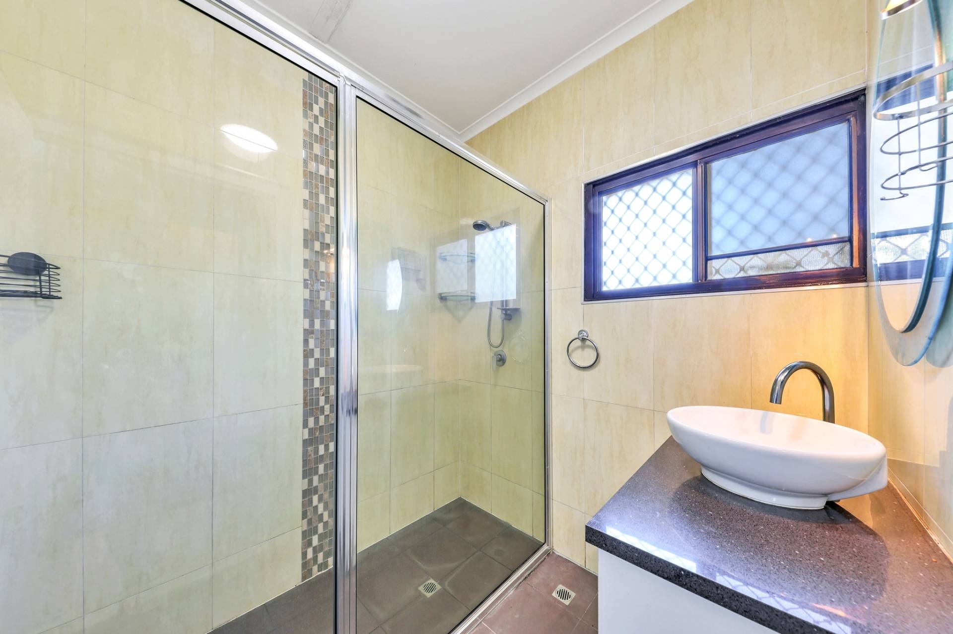 Each of the three bedrooms is a great sized and features tiled flooring along with A/C and the master includes a built in robe, there is also a forth bedroom/study that is fully aircondition to add to the many perks of this property. The bathroom is a modern marvel with large shower that boasts feature tiles and there is a vanity with built in storage and feature basin plus sep toilet.