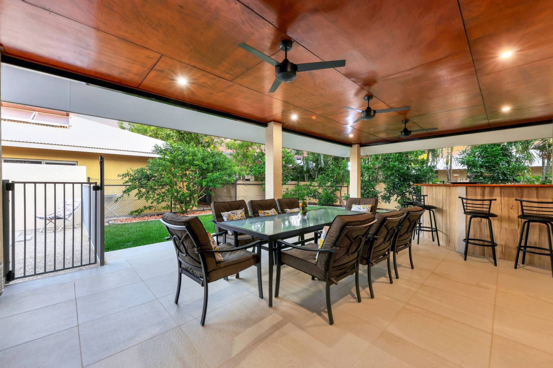 Outside this home continues to impress on a grand scale with an oversized outdoor entertaining area that includes a built in bar and access to the side swimming pool with secure gated entry and privacy screens. Easy gardens and lawns wrap around the home offers space for the pets to play.