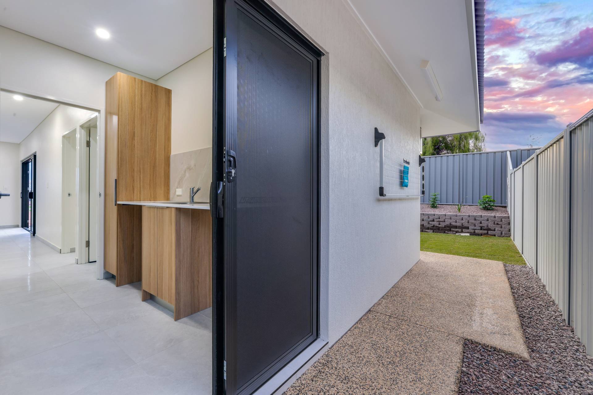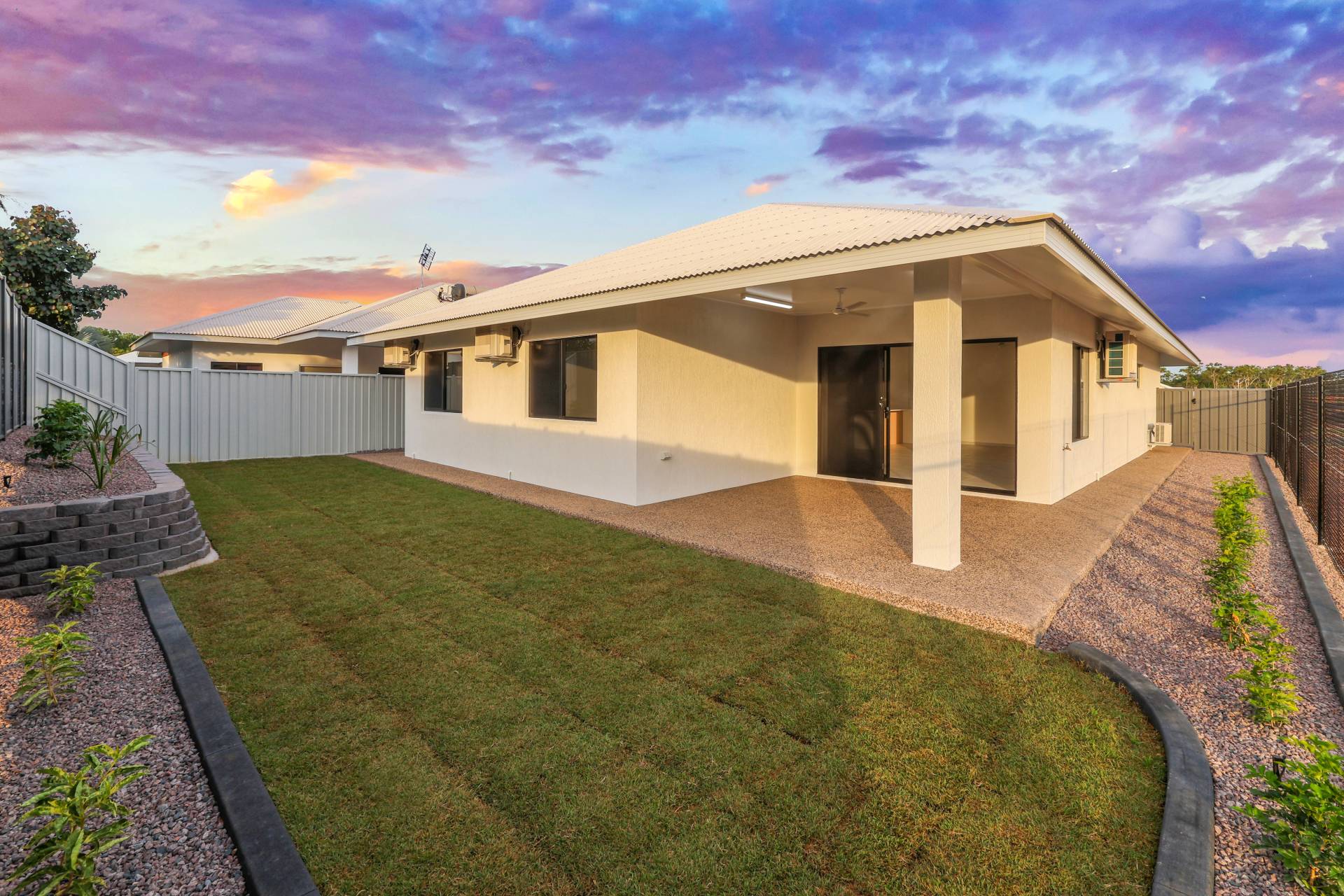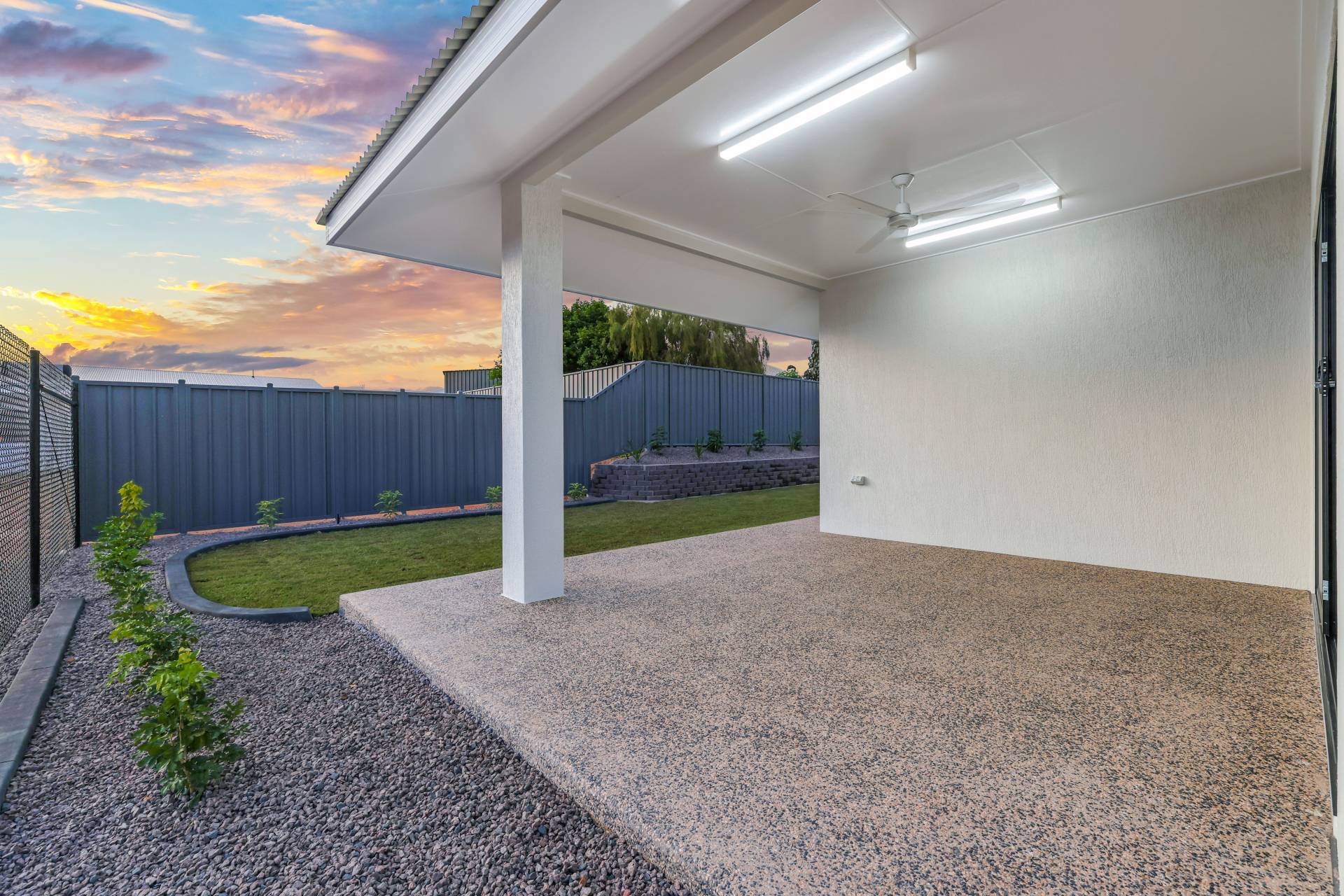 Outside the home has a large verandah for entertaining that overlooks the grassy backyard with gardens establishing and a retaining wall that adds in layers and height to this easy care block.