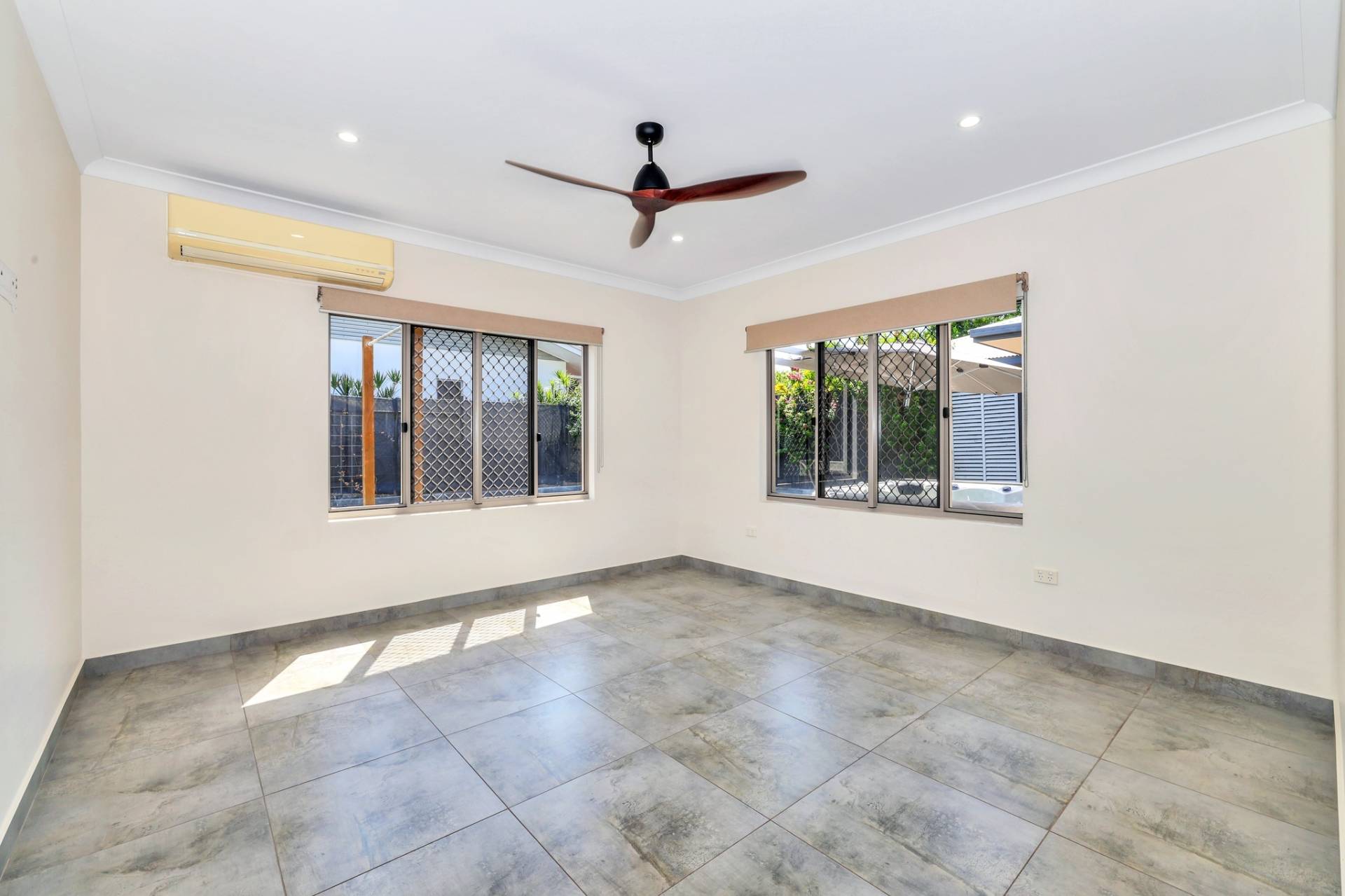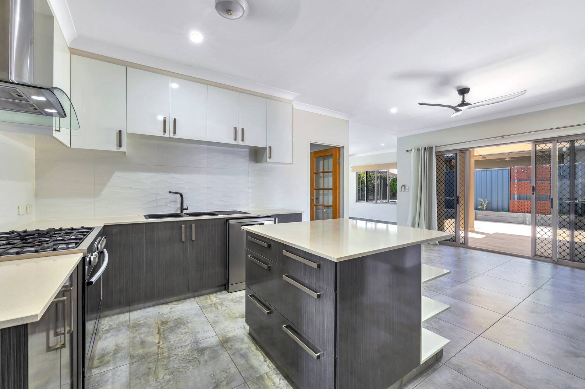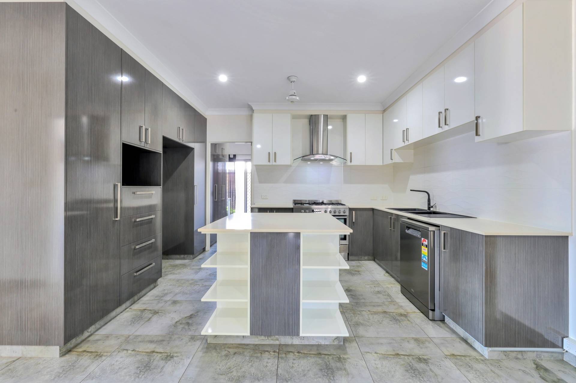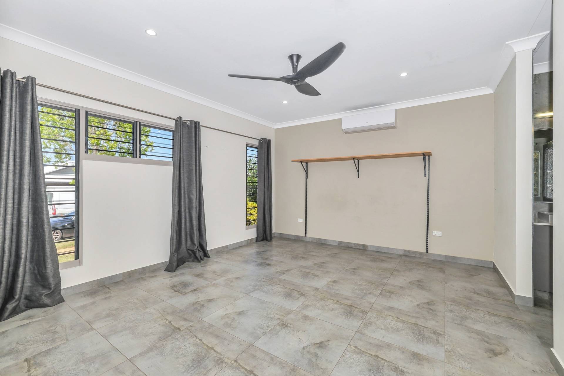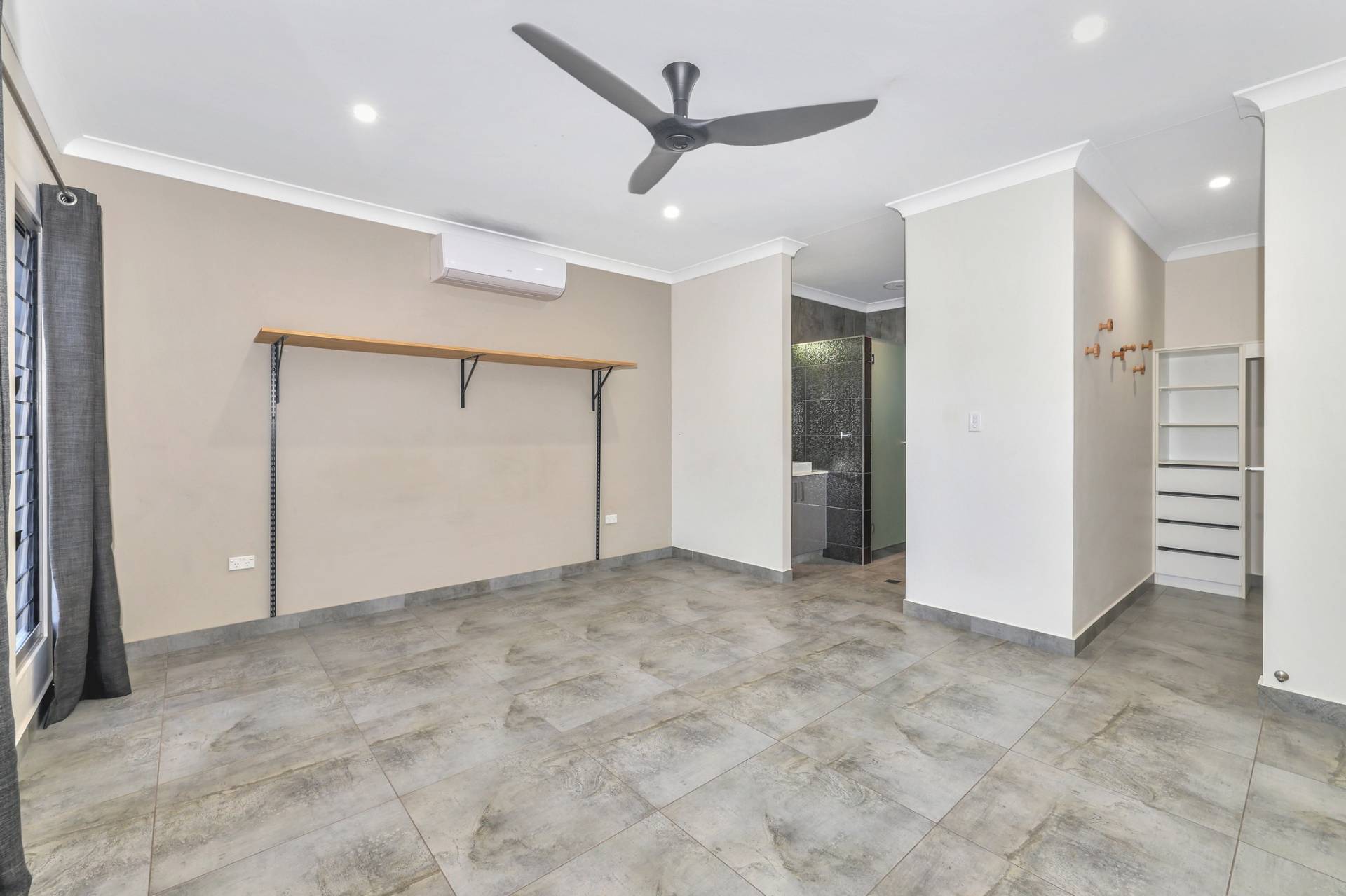 There is a front facing master bedroom suite with generous proportions along with an overhead built in shelve and a walk in robe plus an impressive ensuite with his and hers vanity, glass framed shower and privacy screen over the toilet.  A door separates the kids quarters where there are 3 bedrooms each complimented with a built in robe and A/C plus a central living room with a nook for the study area. The main bathroom resides in this space with a bath tub and shower, central vanity and sep toilet.