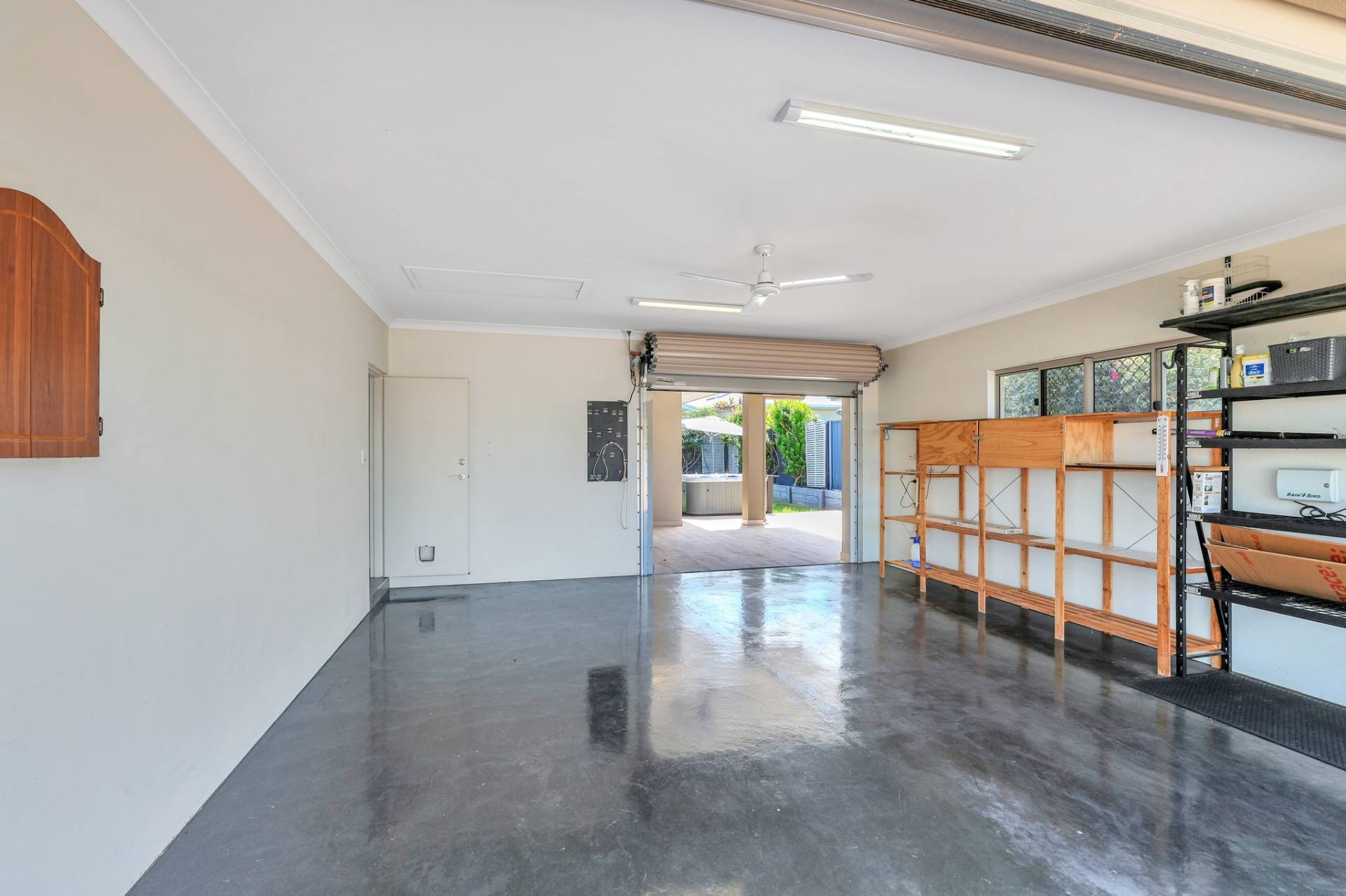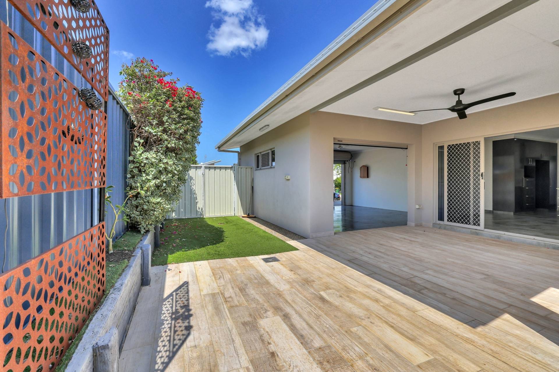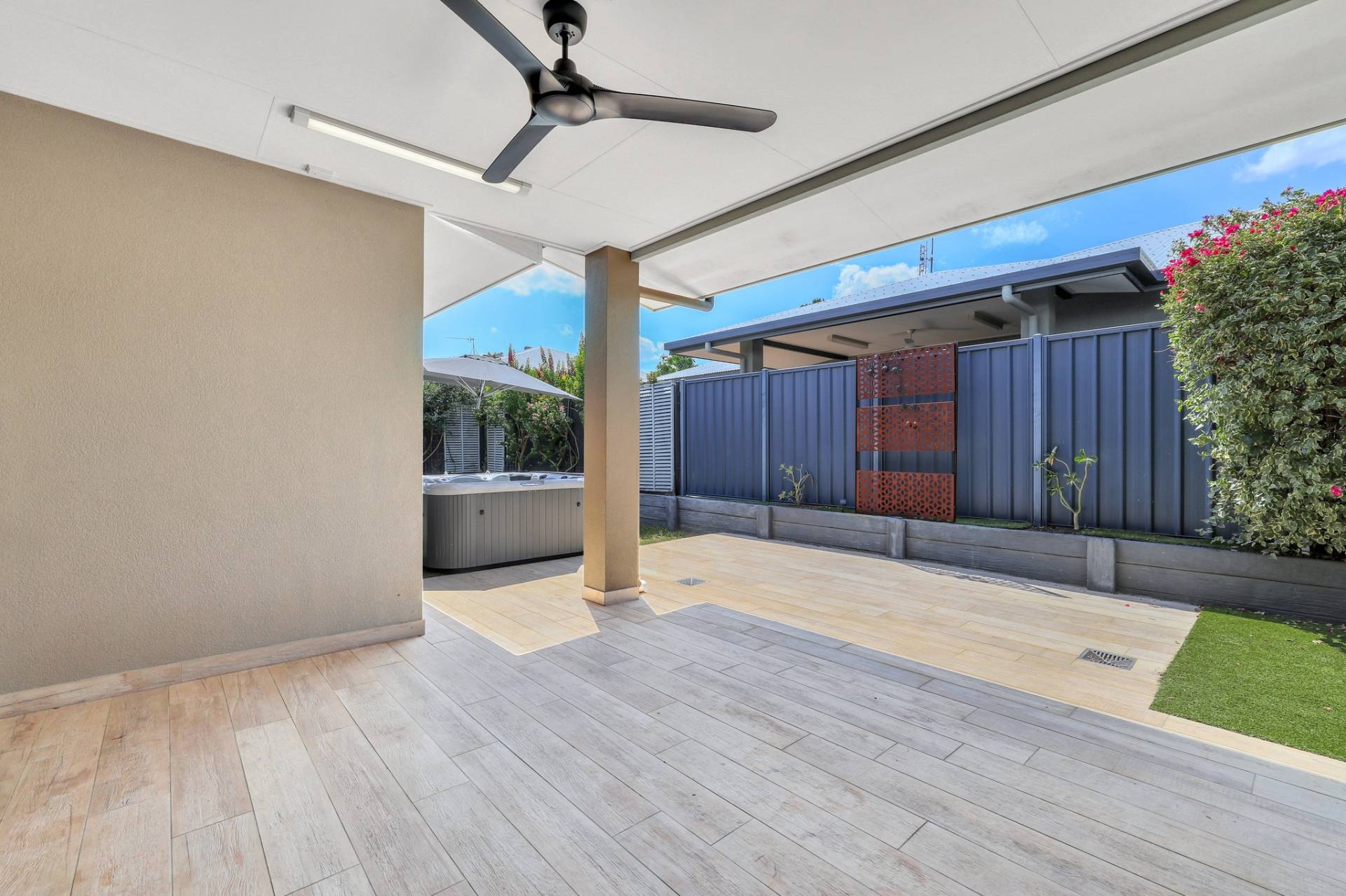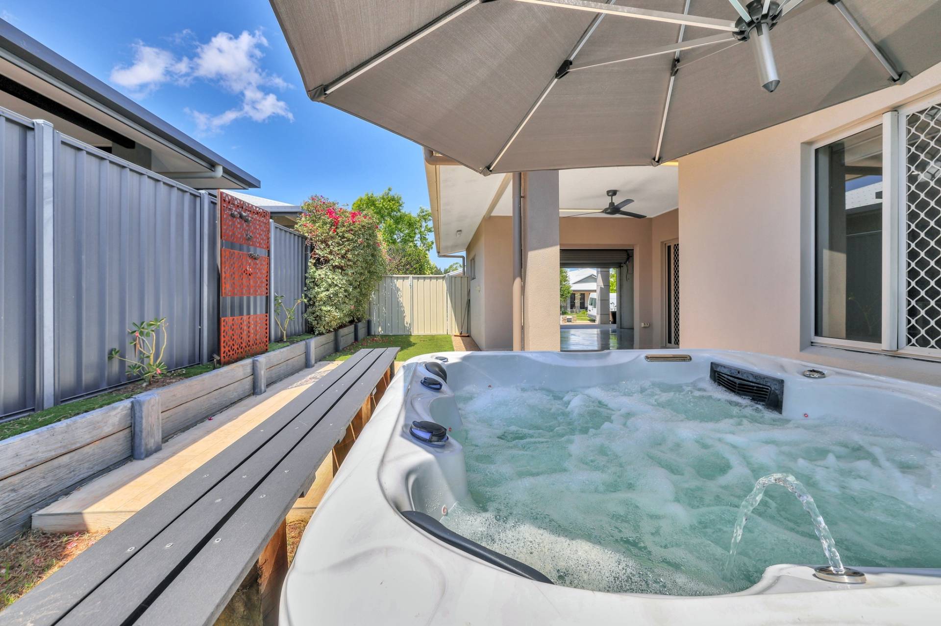 Outside the home continues to impress with a low maintenance high impact design that includes an above ground spa and easy care established gardens along with some lawns as well.