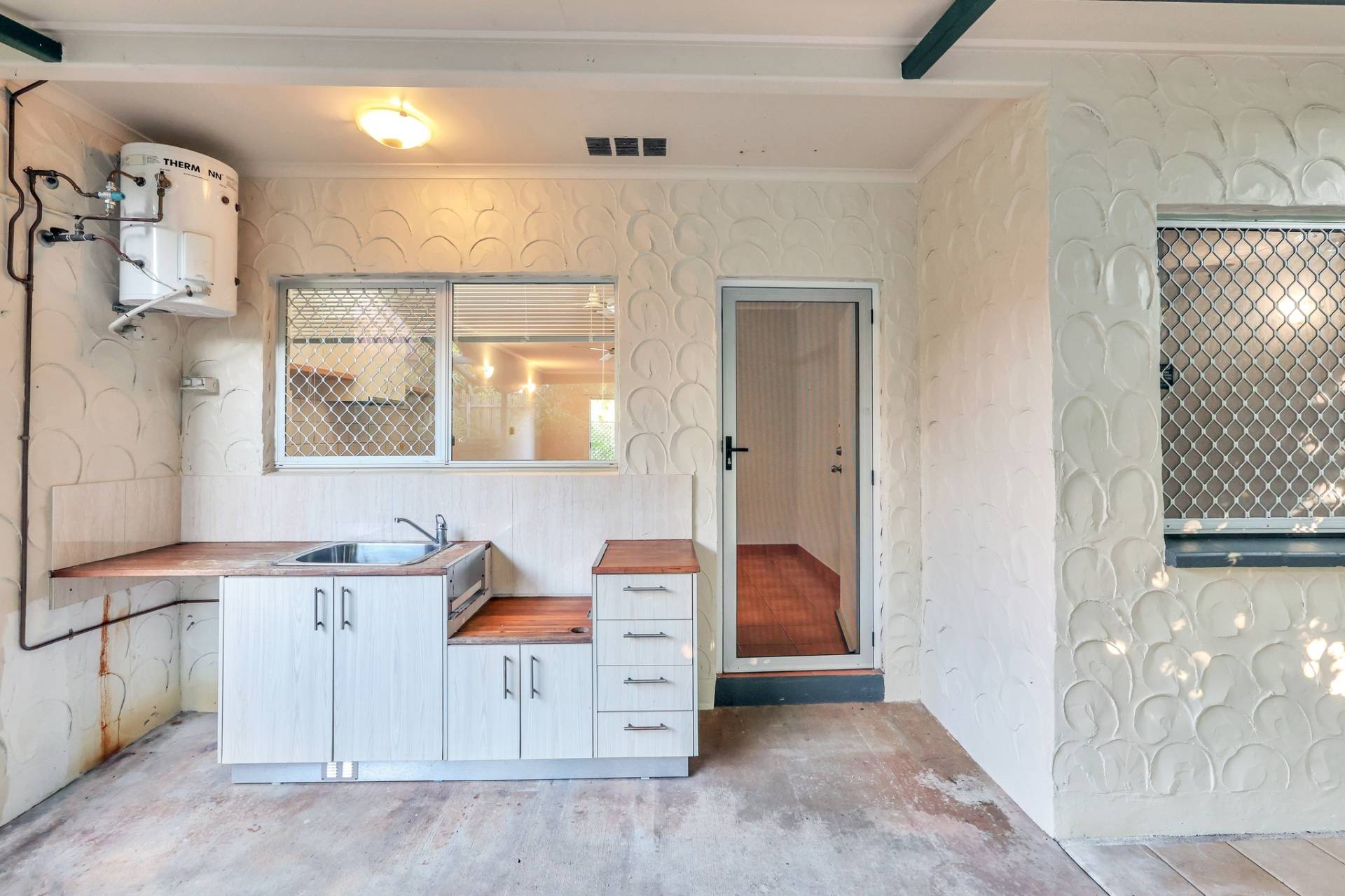 The kitchen is spacious and well designed for everyday cooking with wrap around counters that include plenty of under bench storage along with overhead shelving / displays and access through to the courtyard for easy outdoor dining options.