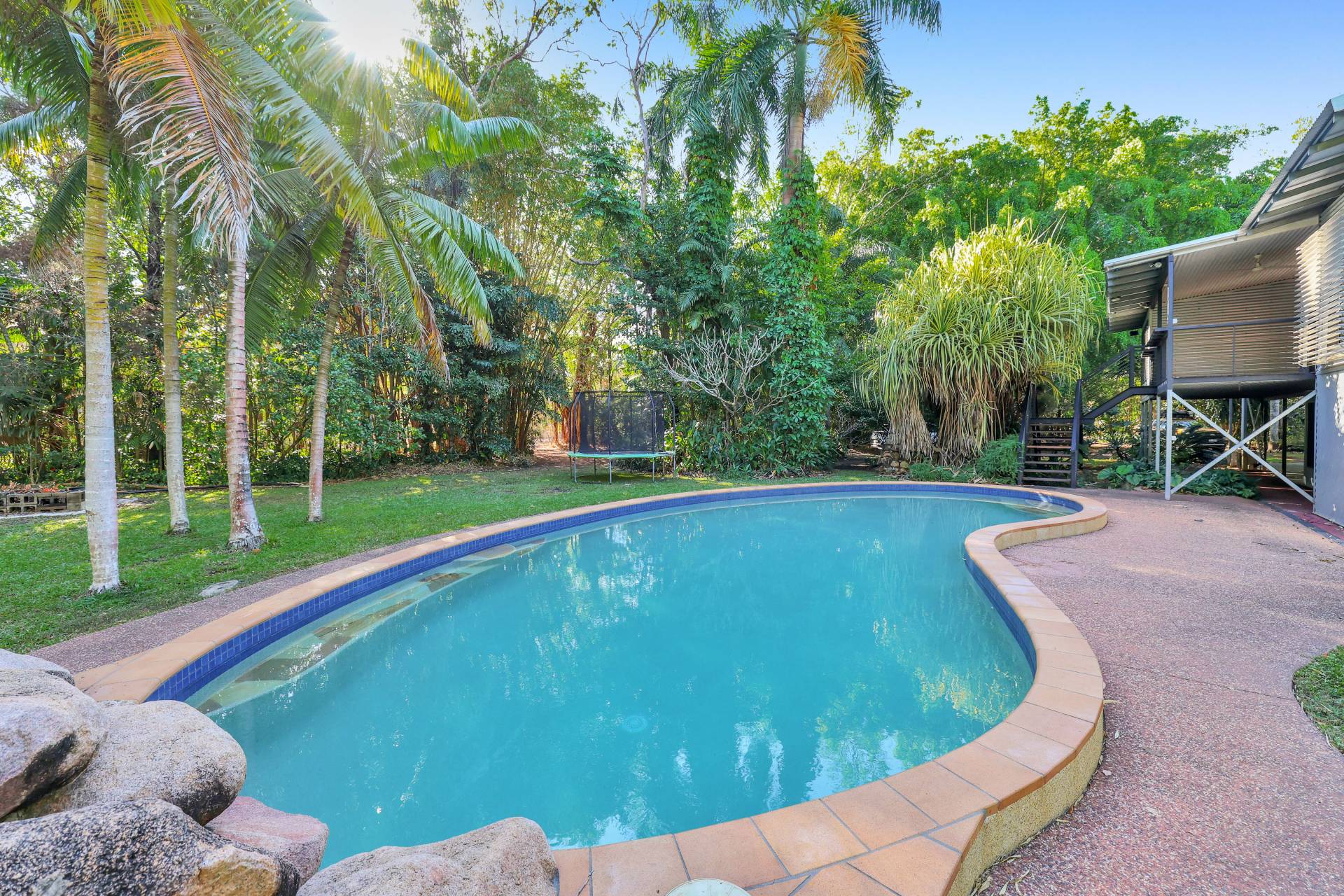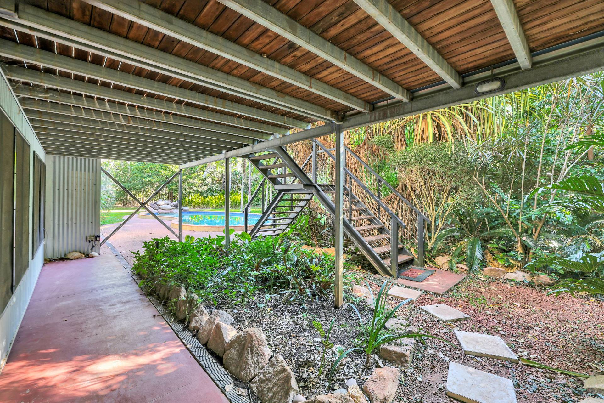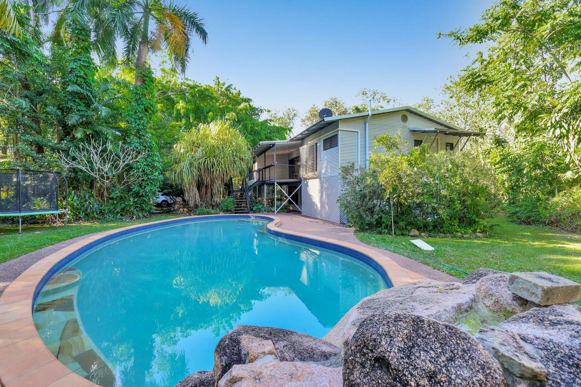 -Elevated 3–4 bedroom home surrounded by lush tropical gardens
