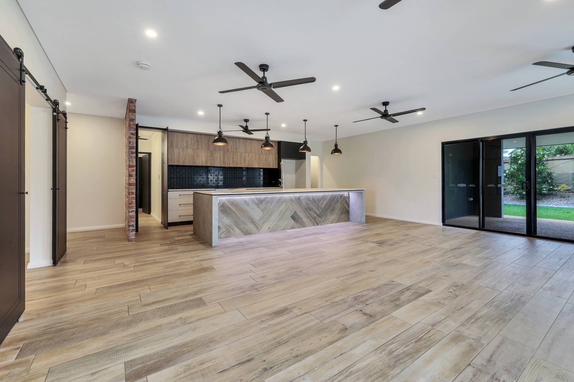 * Expansive open plan living and dining areas feature timber look flooring throughout