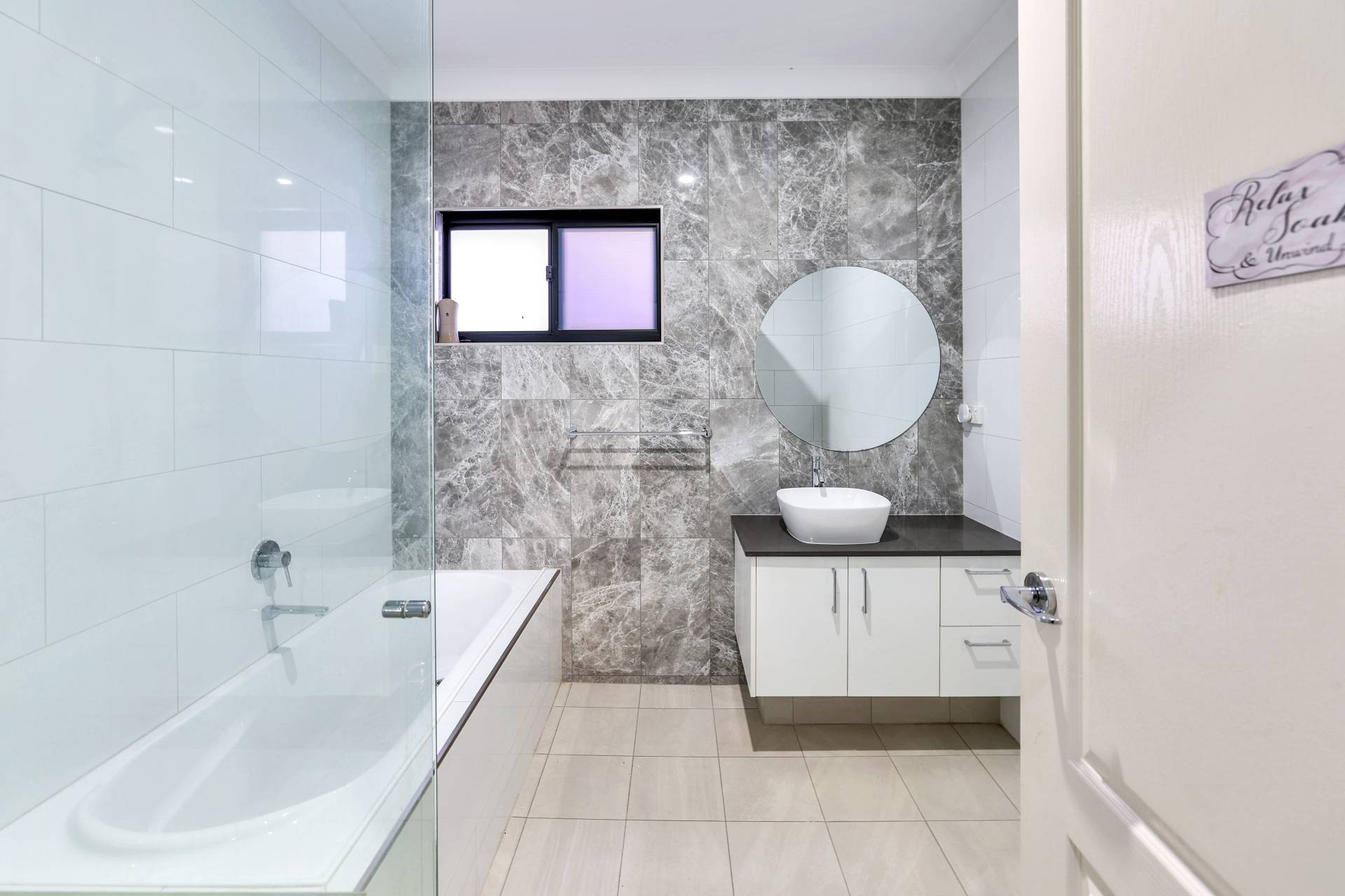 Down the hallway are two well-sized bedrooms with built-in robes and air-conditioning, along with the main bathroom which includes a shower, bathtub and vanity with storage. The master bedroom is positioned at the rear of the home for added privacy and features a walk-in robe and ensuite, overlooking the backyard and greenbelt beyond.