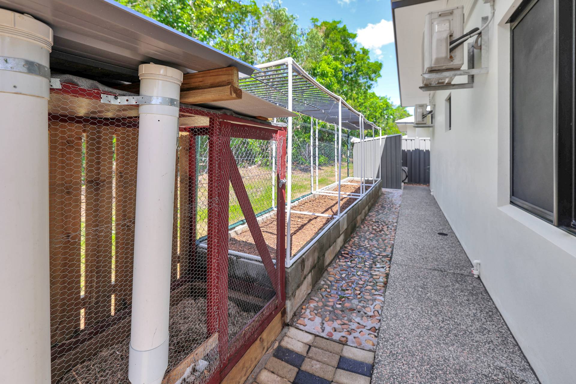 • Backyard includes veggie garden, chicken coop, garden shed and front lawn space