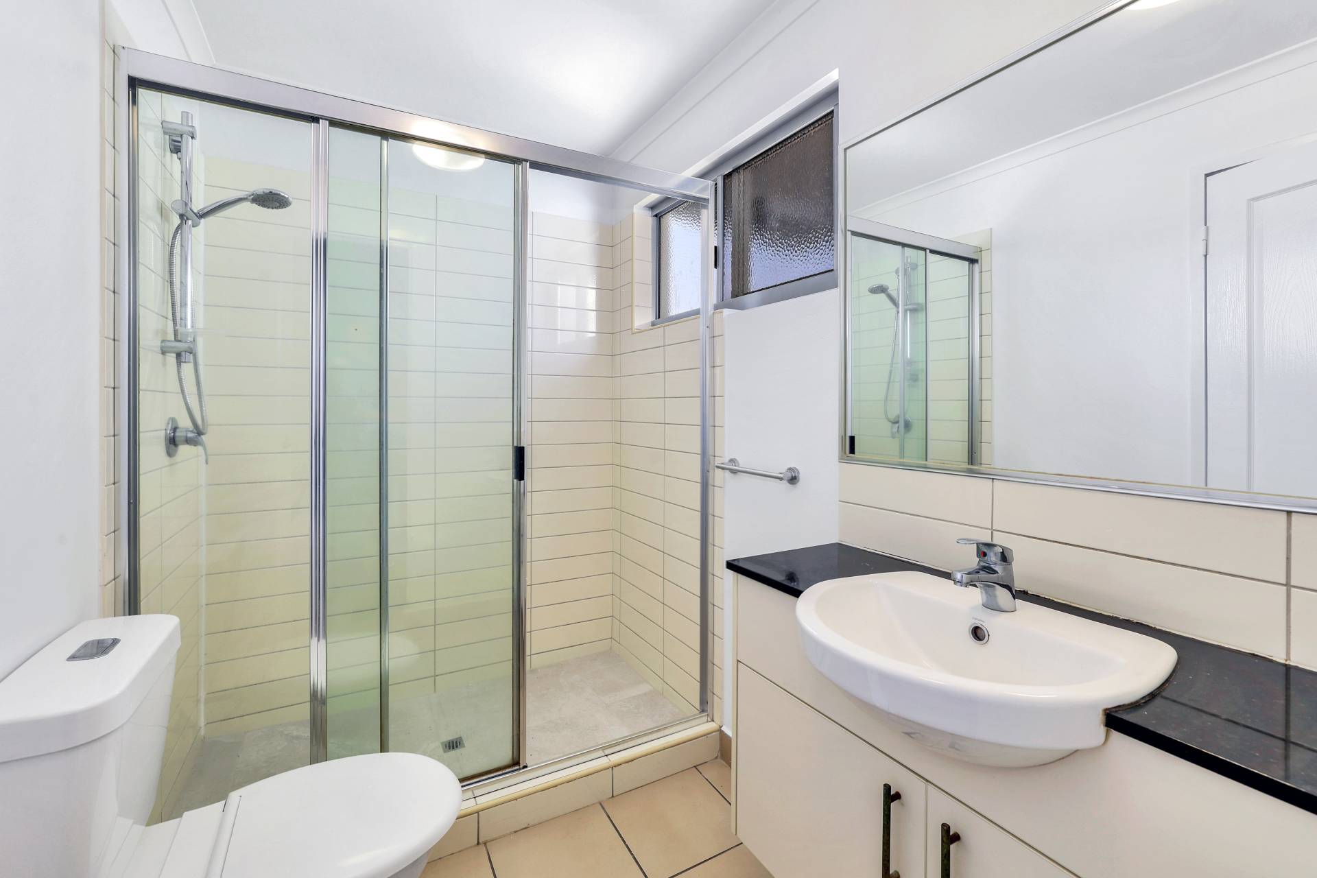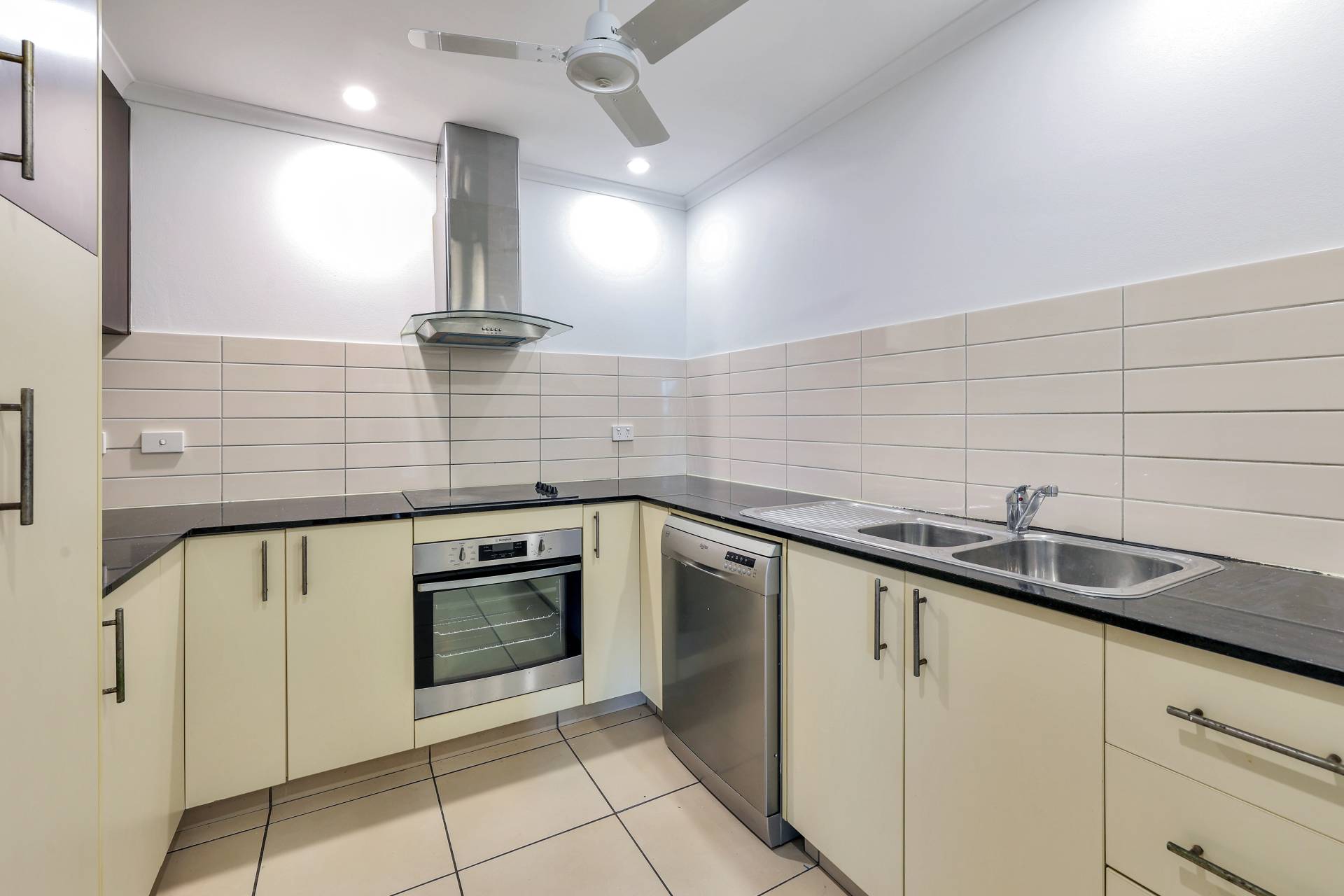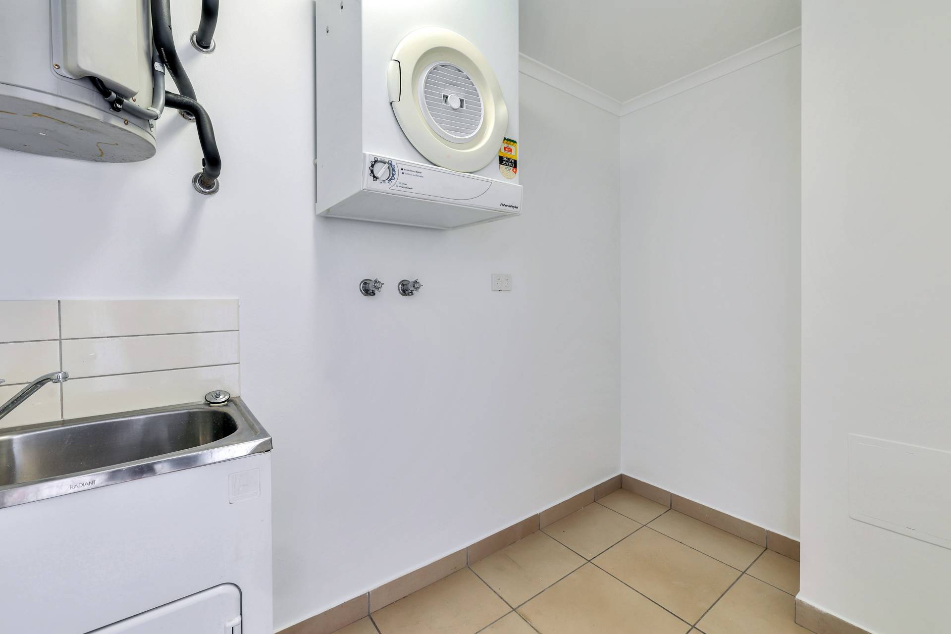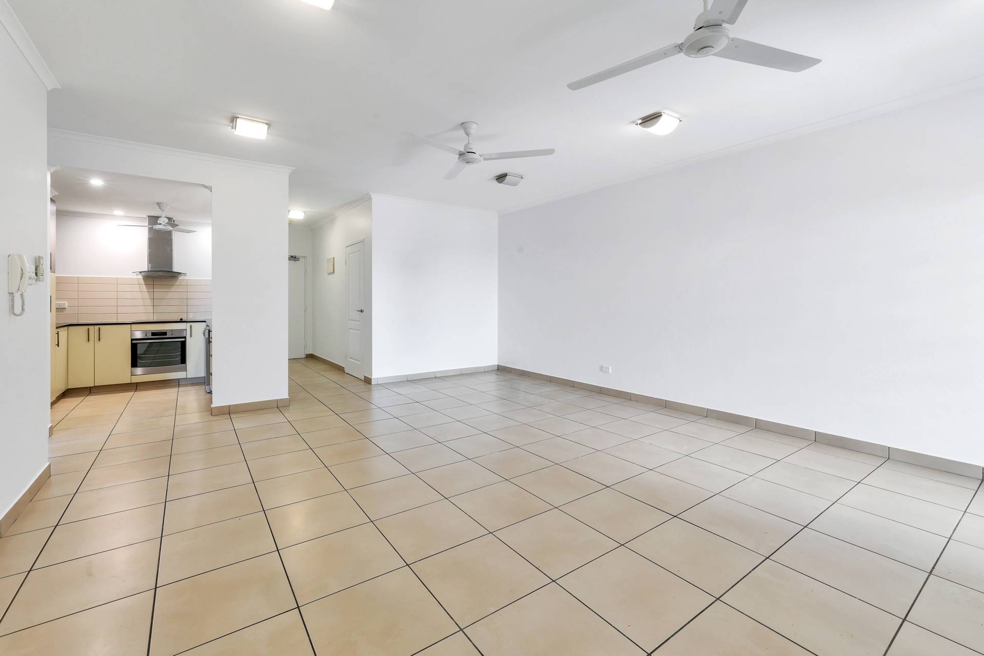 Inside the home is the laundry amenities and a storage room so you can kick off your shoes and tuck away your items in the storage area before entertaining into the spacious main living areas with an open plan living and dining room flooded with natural light and sea breezes. the living areas have a sliding door through to the balcony where the city skyline and ocean views are on show! At night the city will come to life with a million twinkling lights and you can watch the storms roll in over the docks in the wet season for a spectacular show.