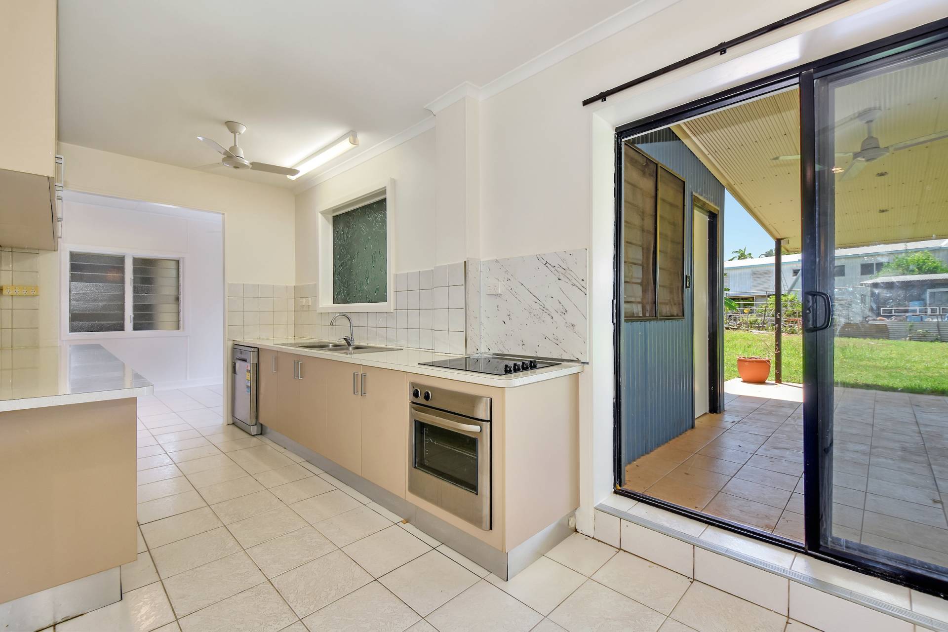 Inside, the home features a functional layout with light-filled living spaces designed to capture natural breezes. The open-plan living and dining area connects effortlessly to the outdoor space, creating an ideal setting for entertaining or enjoying the laid-back Top End lifestyle.