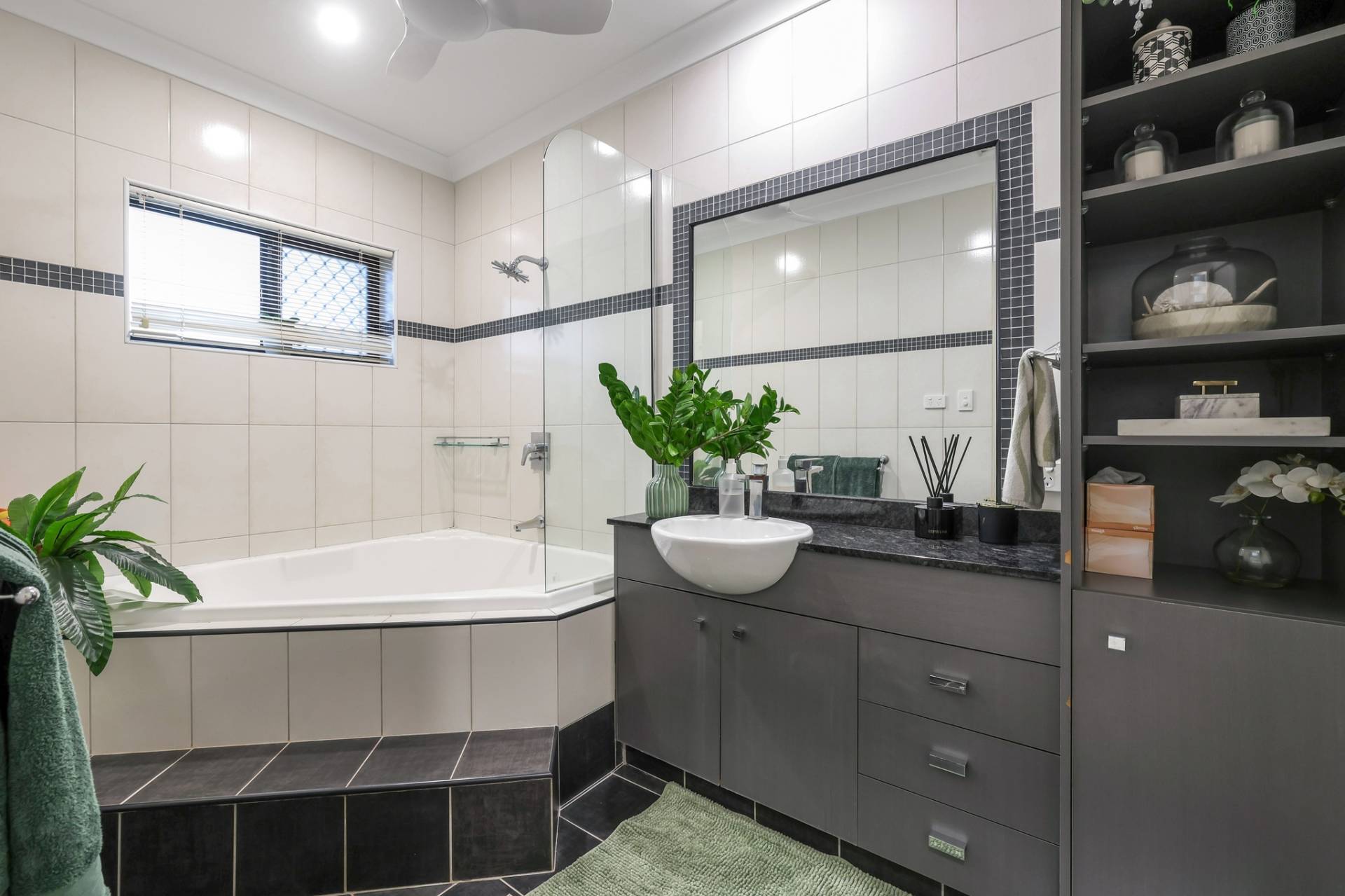 Gated at street level with a screen of tropical gardens across the front and wide open lawns where the kids and pets can explore – the home has a side carport parking bay for 2 with room for additional vehicles in the driveway. Out the back is a huge outdoor entertaining area with a built in gazebo perfect for the pizza oven or the smoker! There is a large in ground swimming pool with tropical gardens and secure fencing along with a fenced in patio for entertaining and room for the trampoline and kids swings as well.