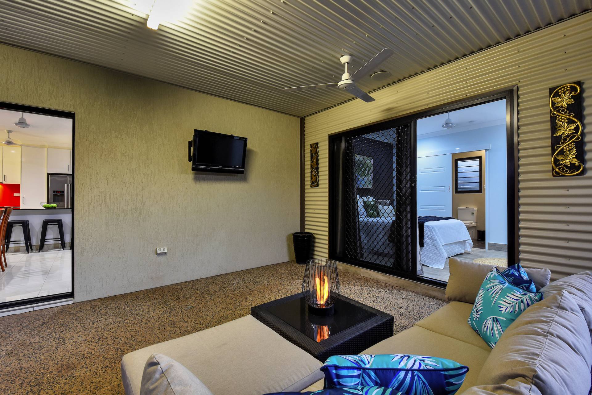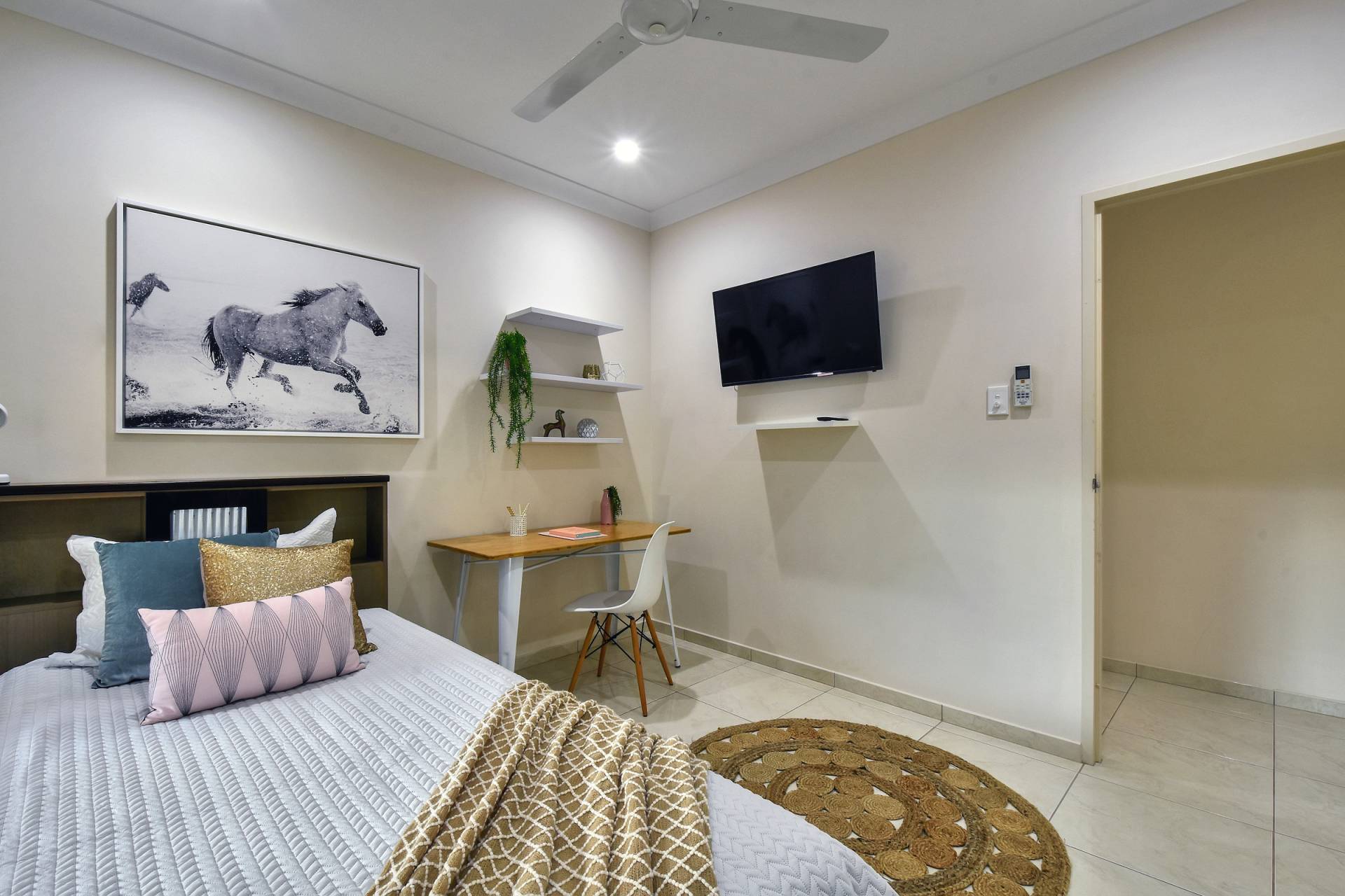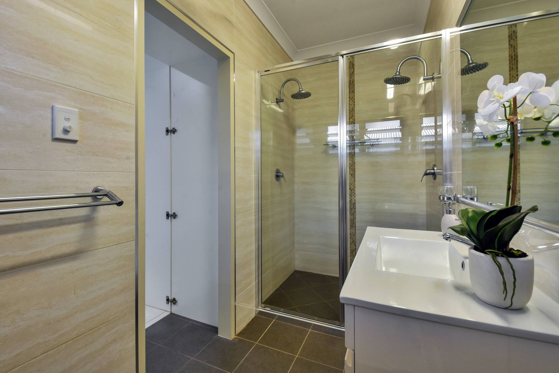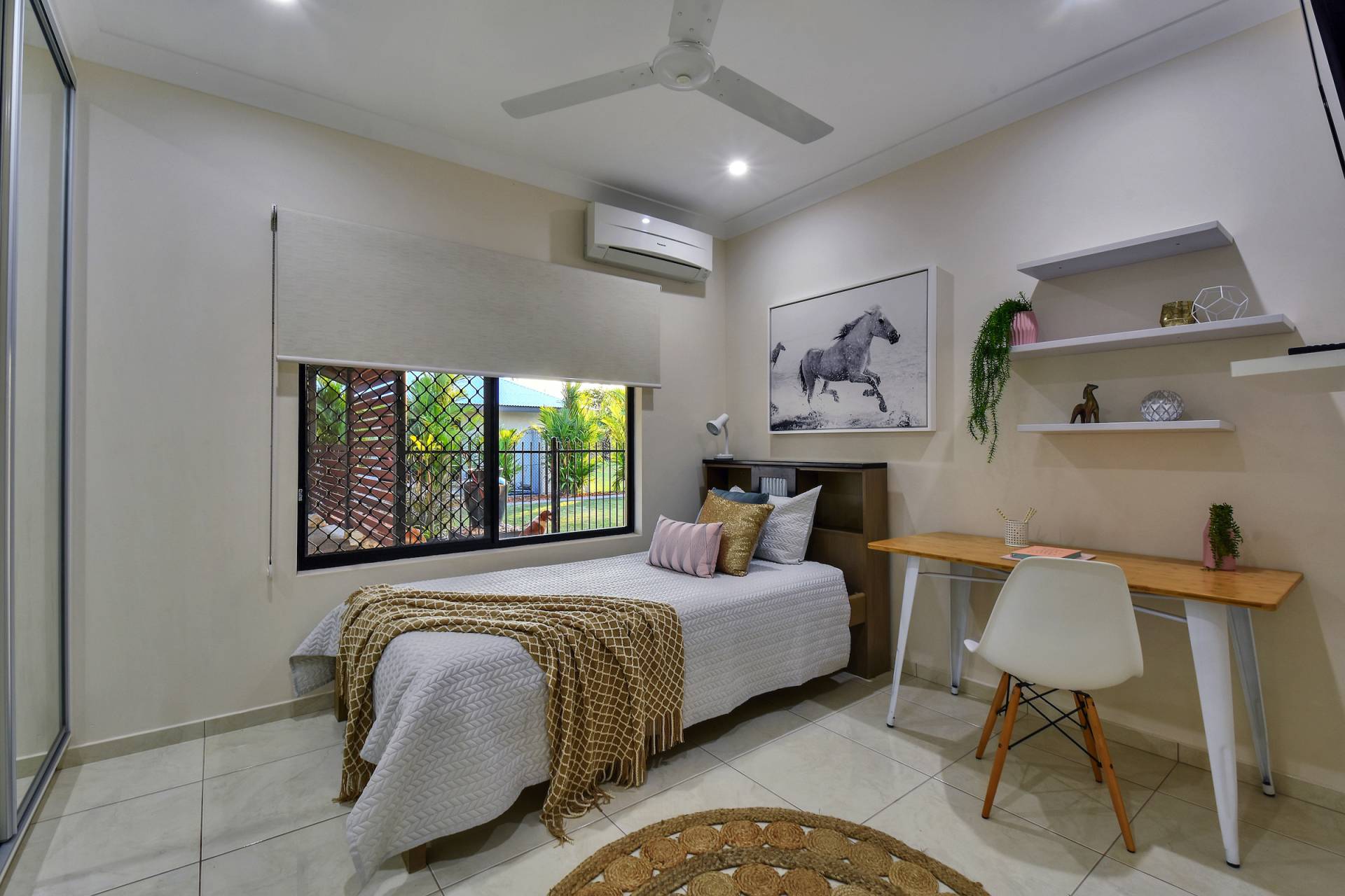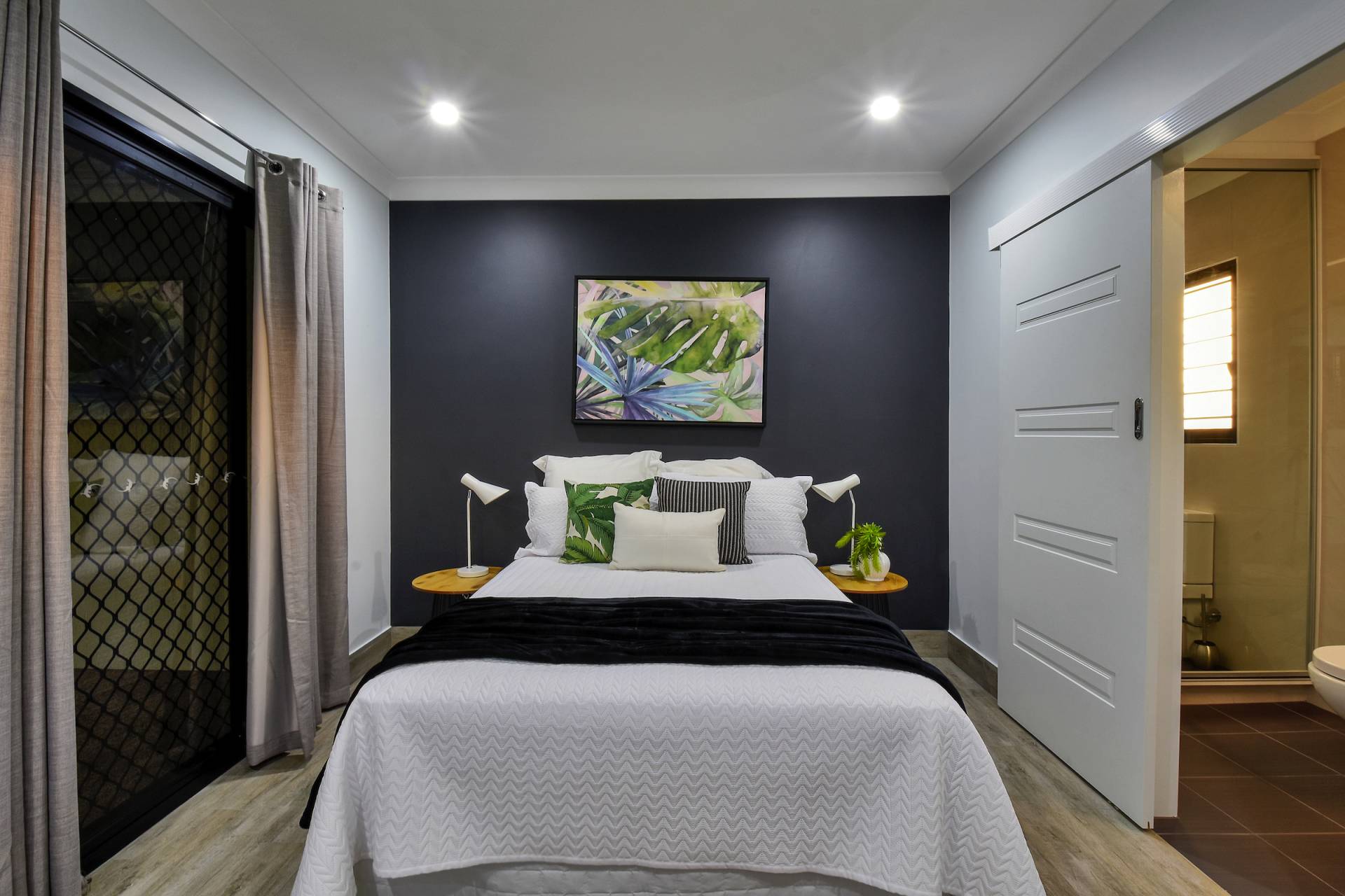 Three bedrooms reside at the front of the home and all include large sliding windows that overlook tropical leafy gardens, each has A/C and tiled flooring while the master suite is elevated with a hidden walk in ensuite behind twin built in robes.